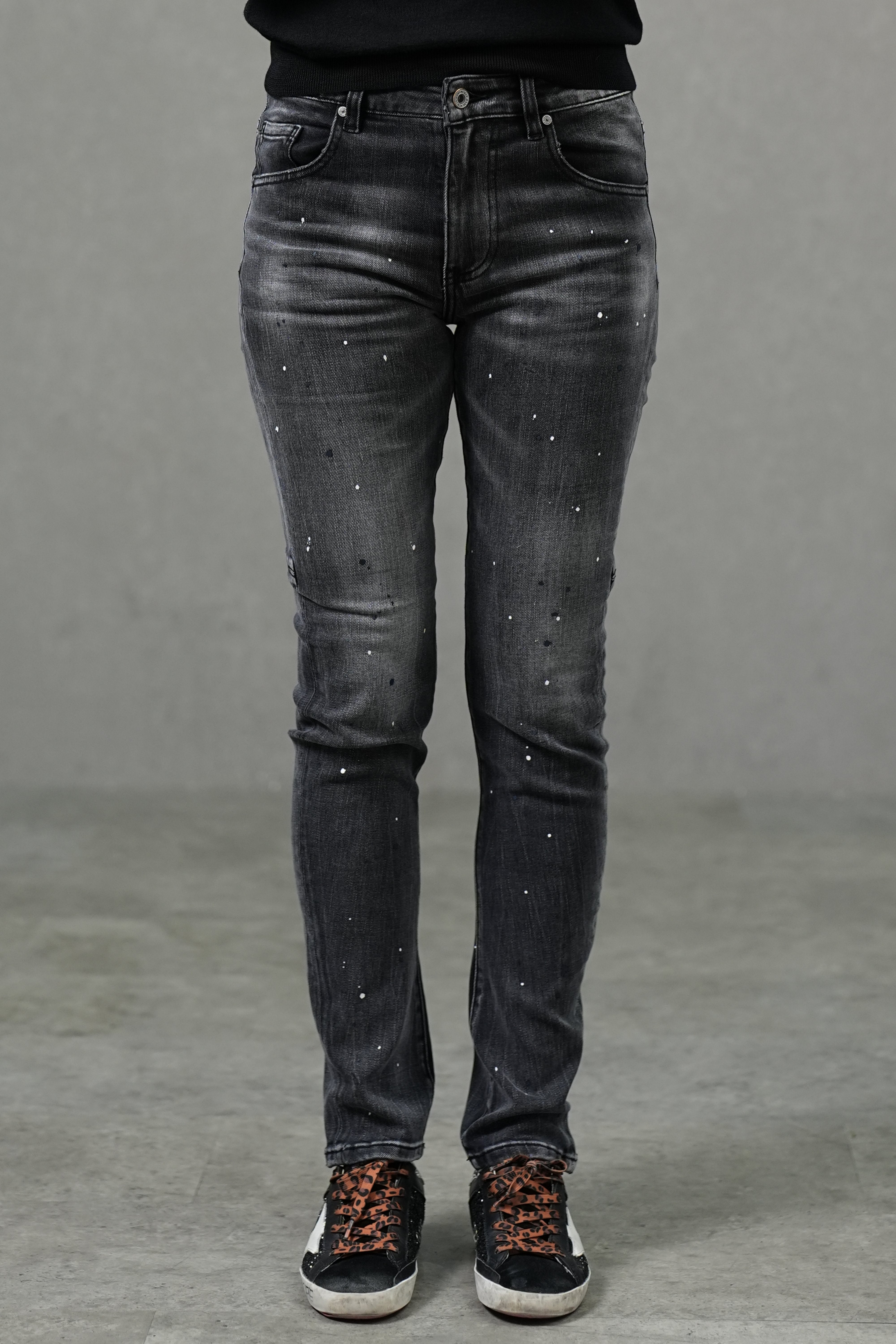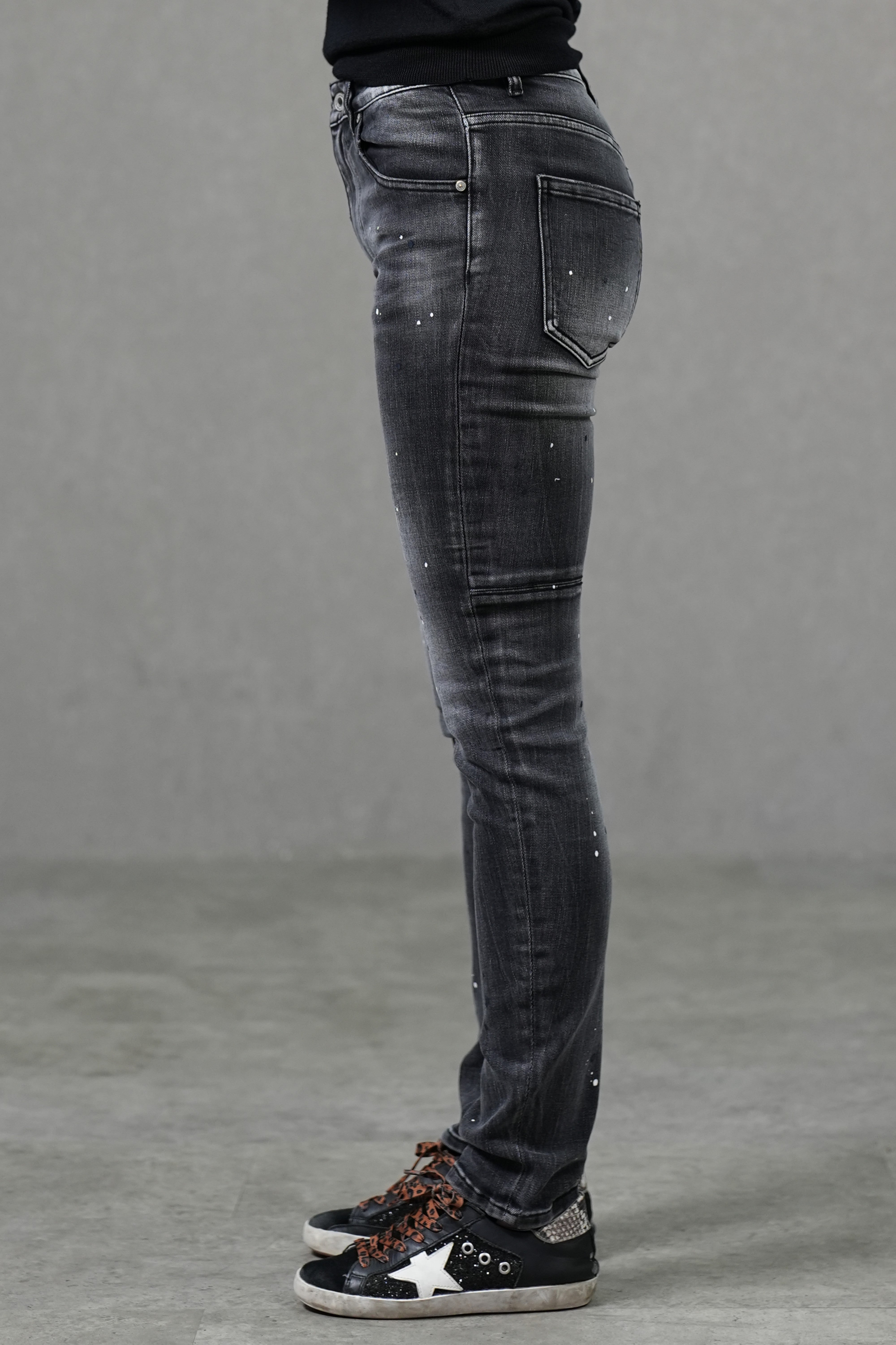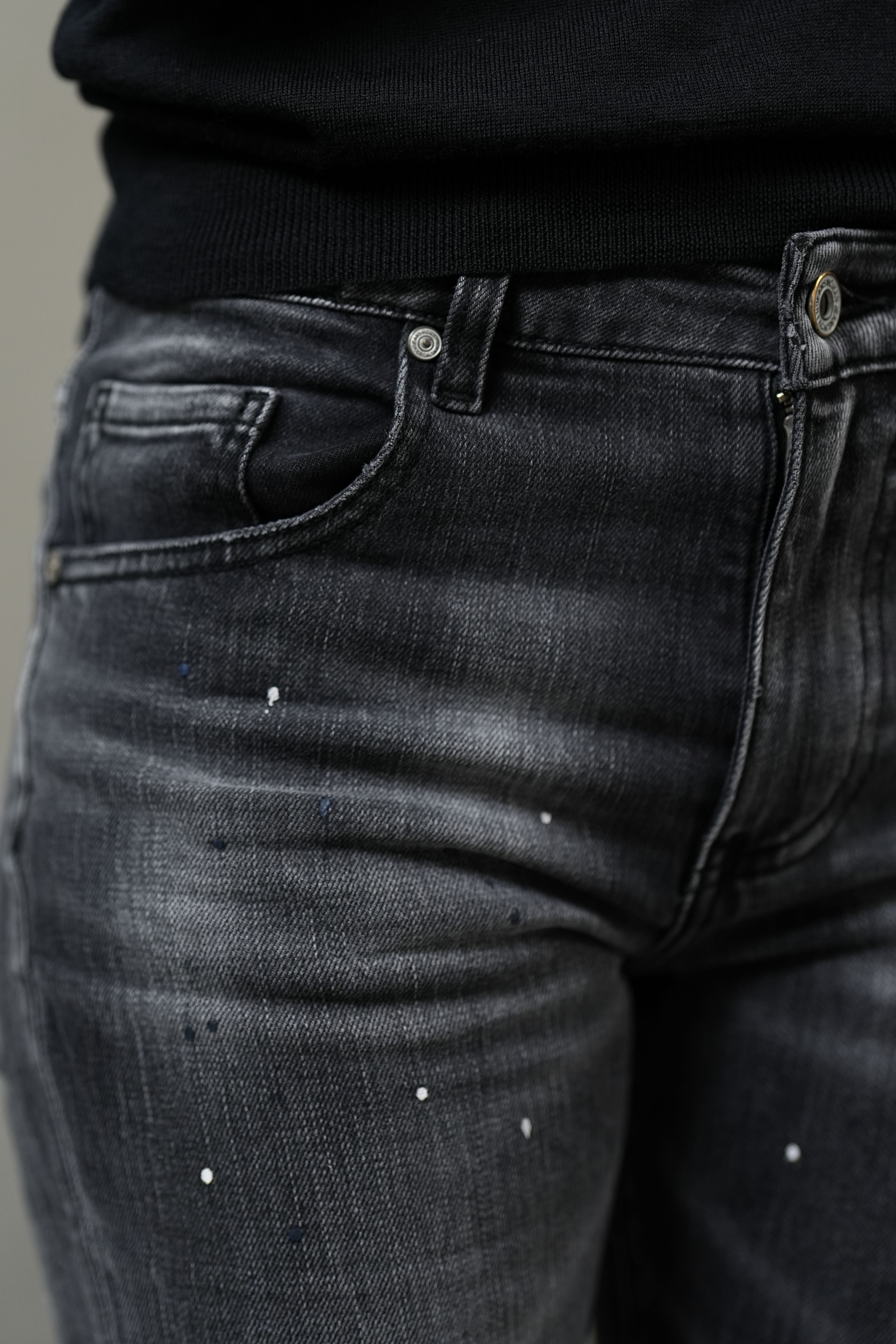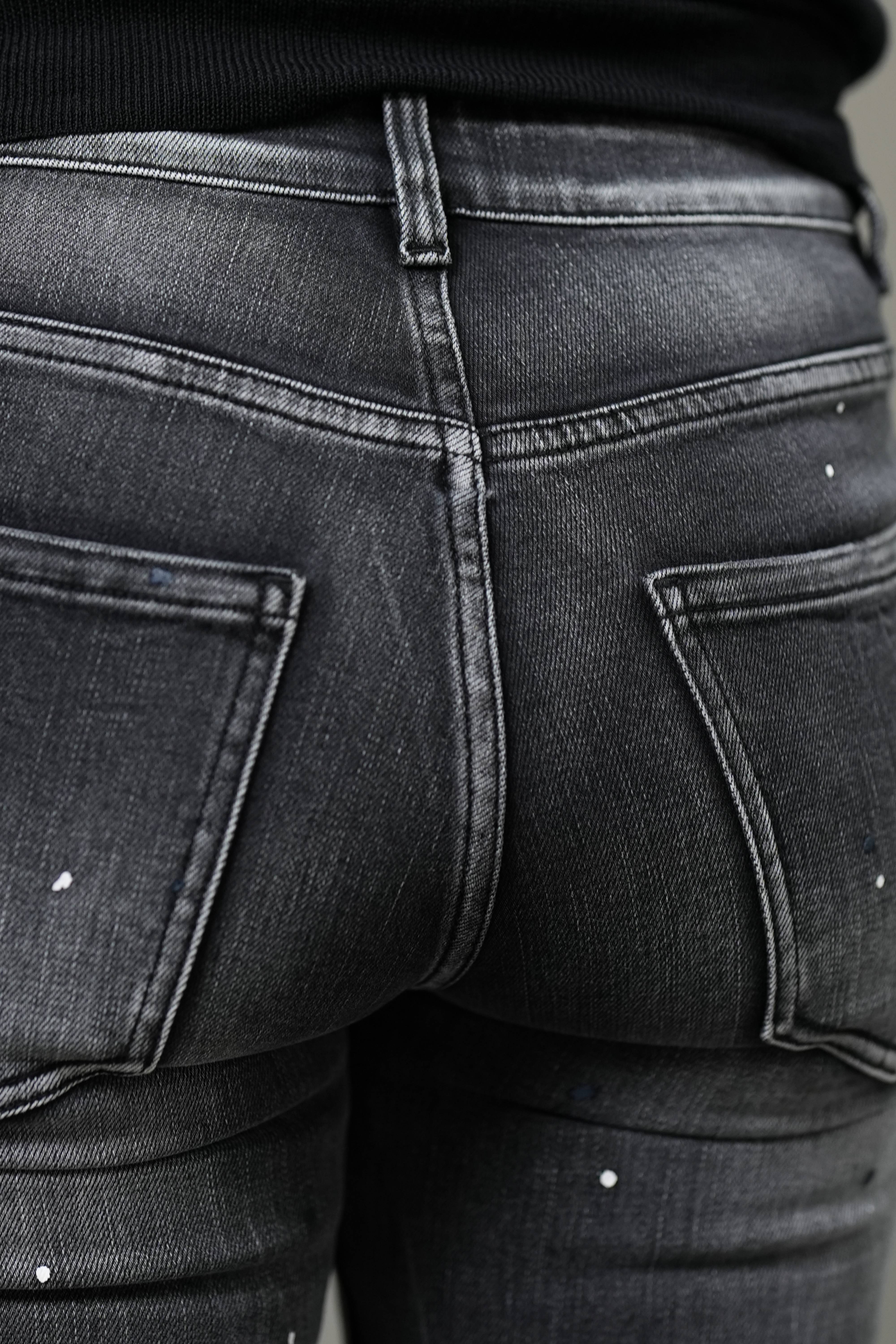 Ein eleganter schwarzer Denim mit dezentem schwarz-weißem Lackdruck verleiht dem Alltagsstil eine raffinierte Note. Diese Jeans im Slim Fit mit mittelhoher Taille vereint Struktur und Komfort mit wenig Stretch-Denim für eine klare, selbstbewusste Silhouette.