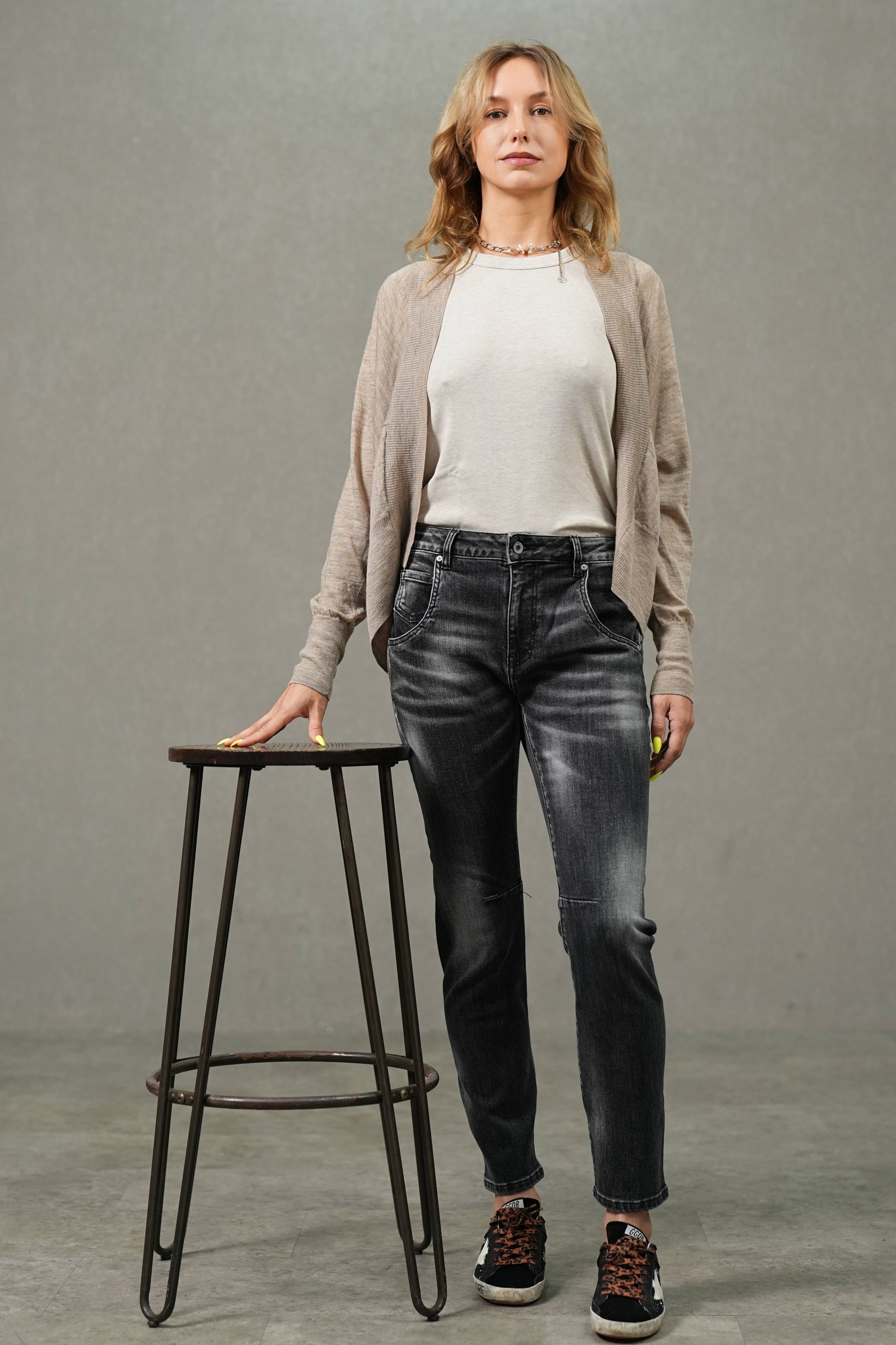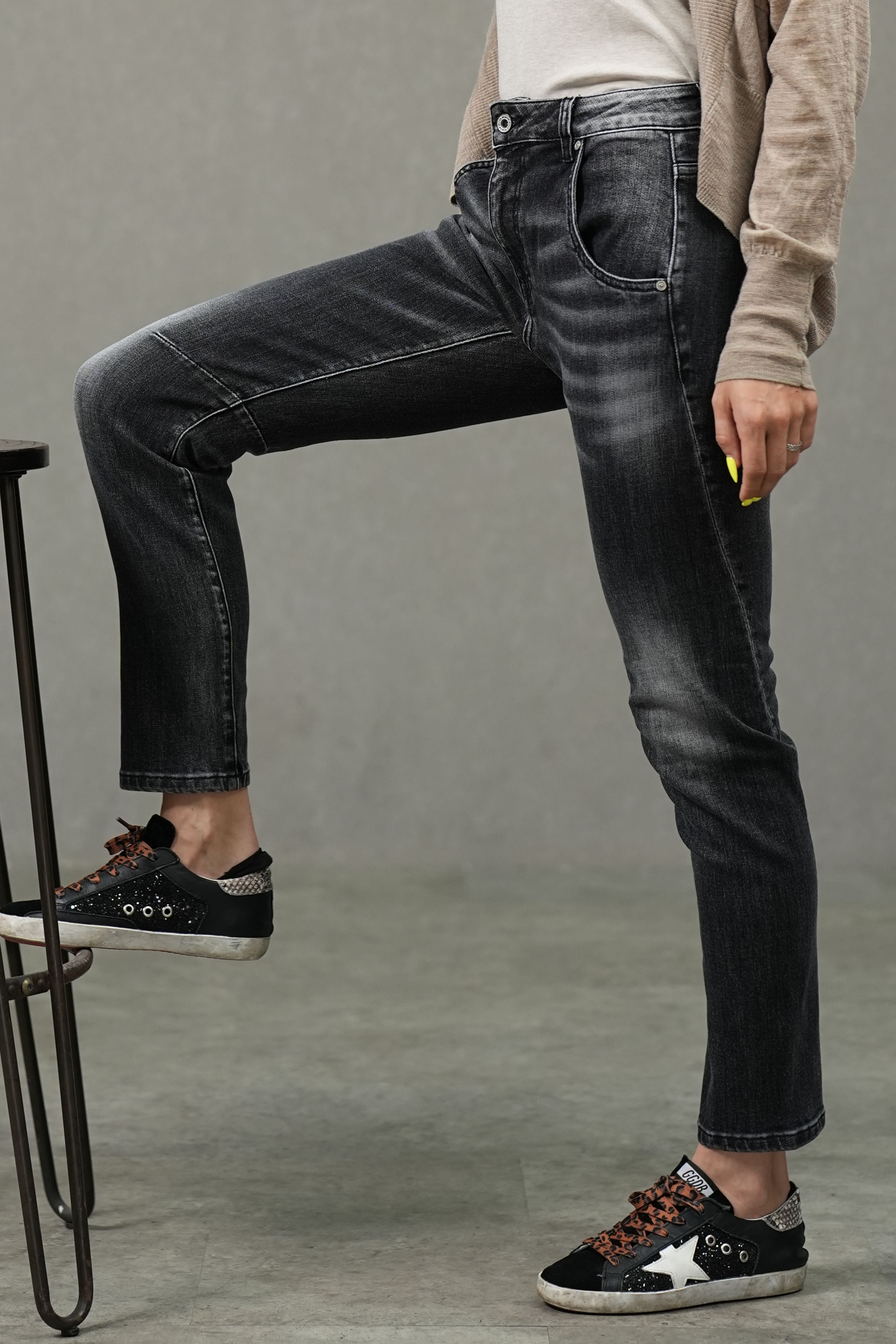 Diese Jeans aus glattem, mittelelastischem Denim passt sich Ihren Bewegungen an. Sie hat eine mittelhohe Taille und einen klaren Slim Fit – sie schmeichelt der Silhouette und bietet gleichzeitig Komfort für jeden Tag. Die raffinierte schwarze Waschung lässt sich problemlos mit allem kombinieren und sorgt für einen eleganten, modernen Look – egal ob tagsüber oder abends.