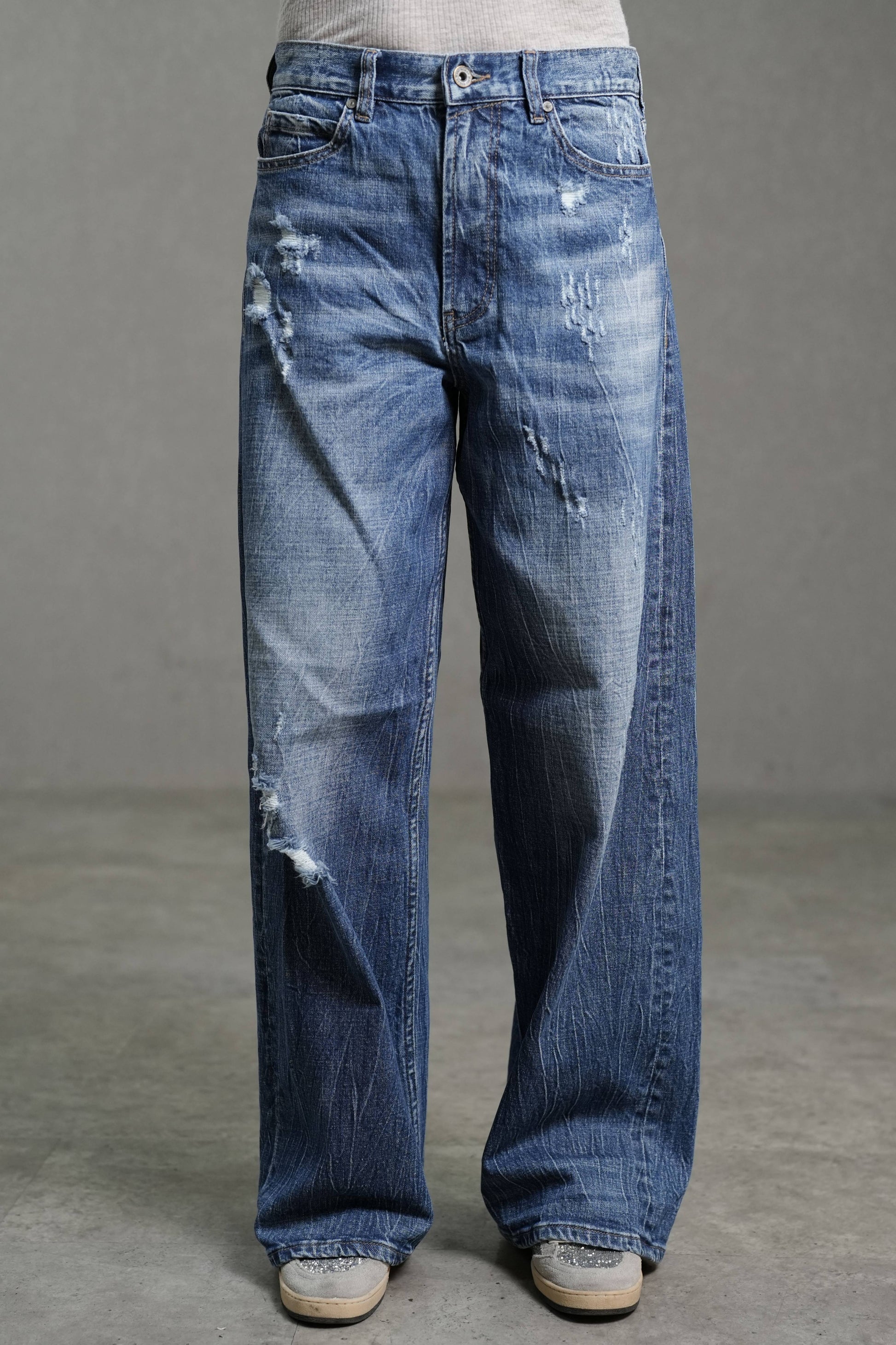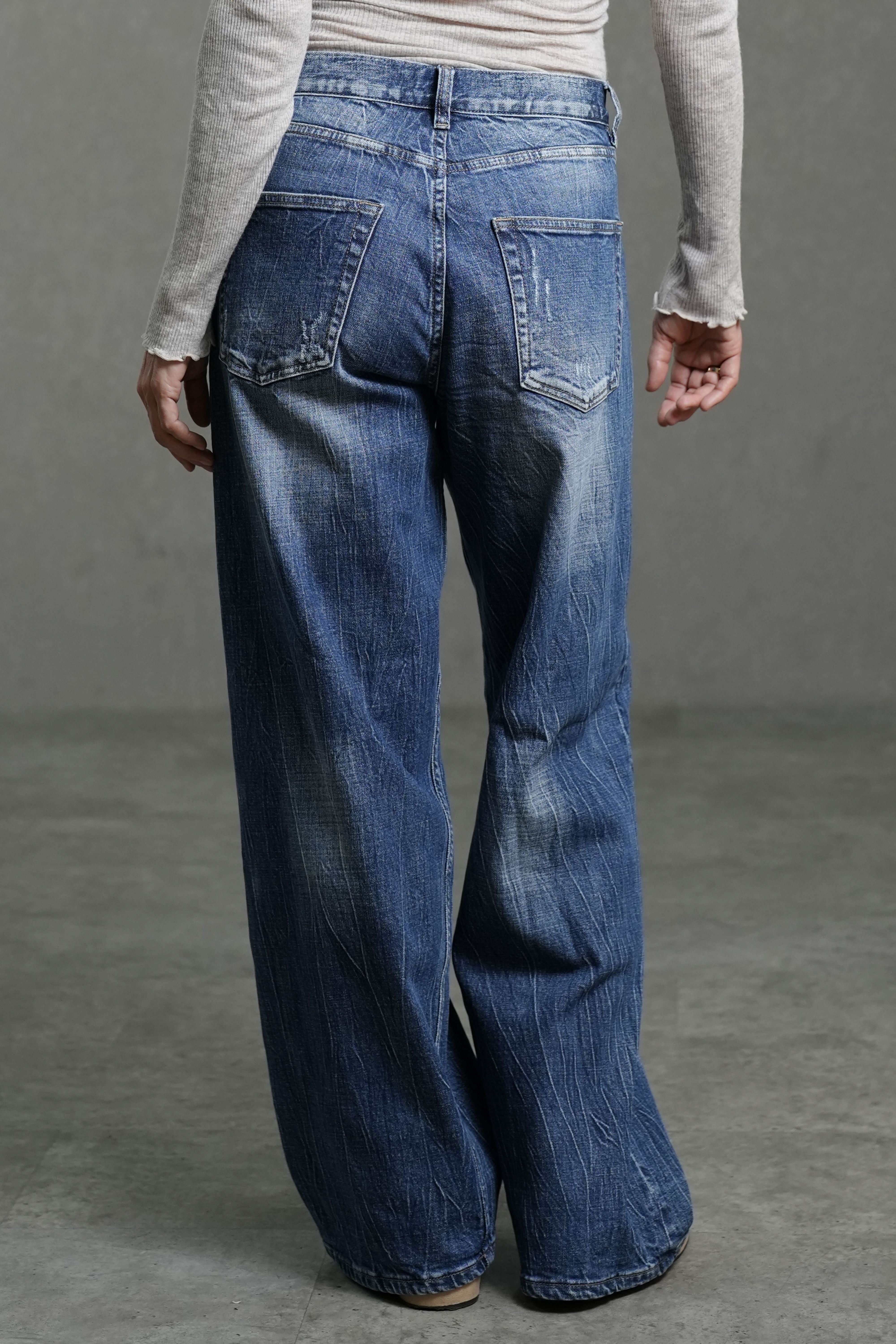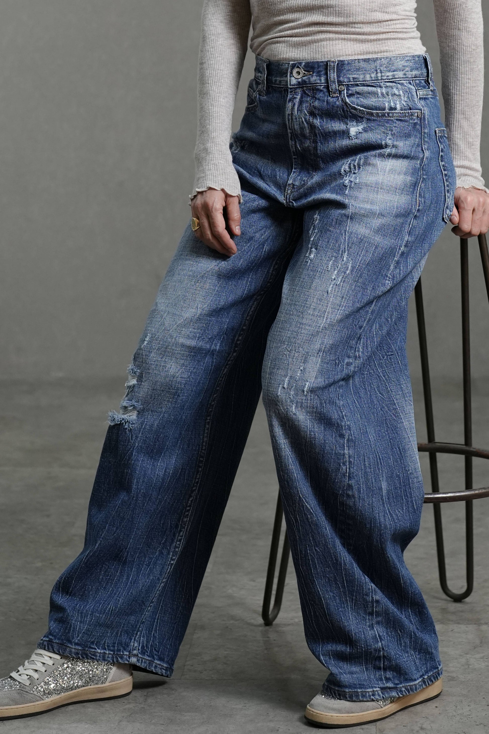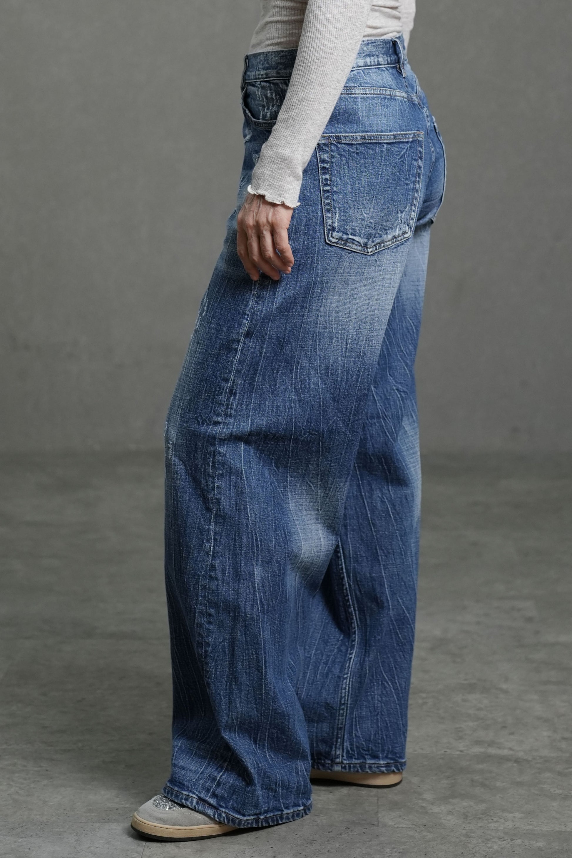 Blaue Jeans mit weitem Bein und geringem Stretchanteil