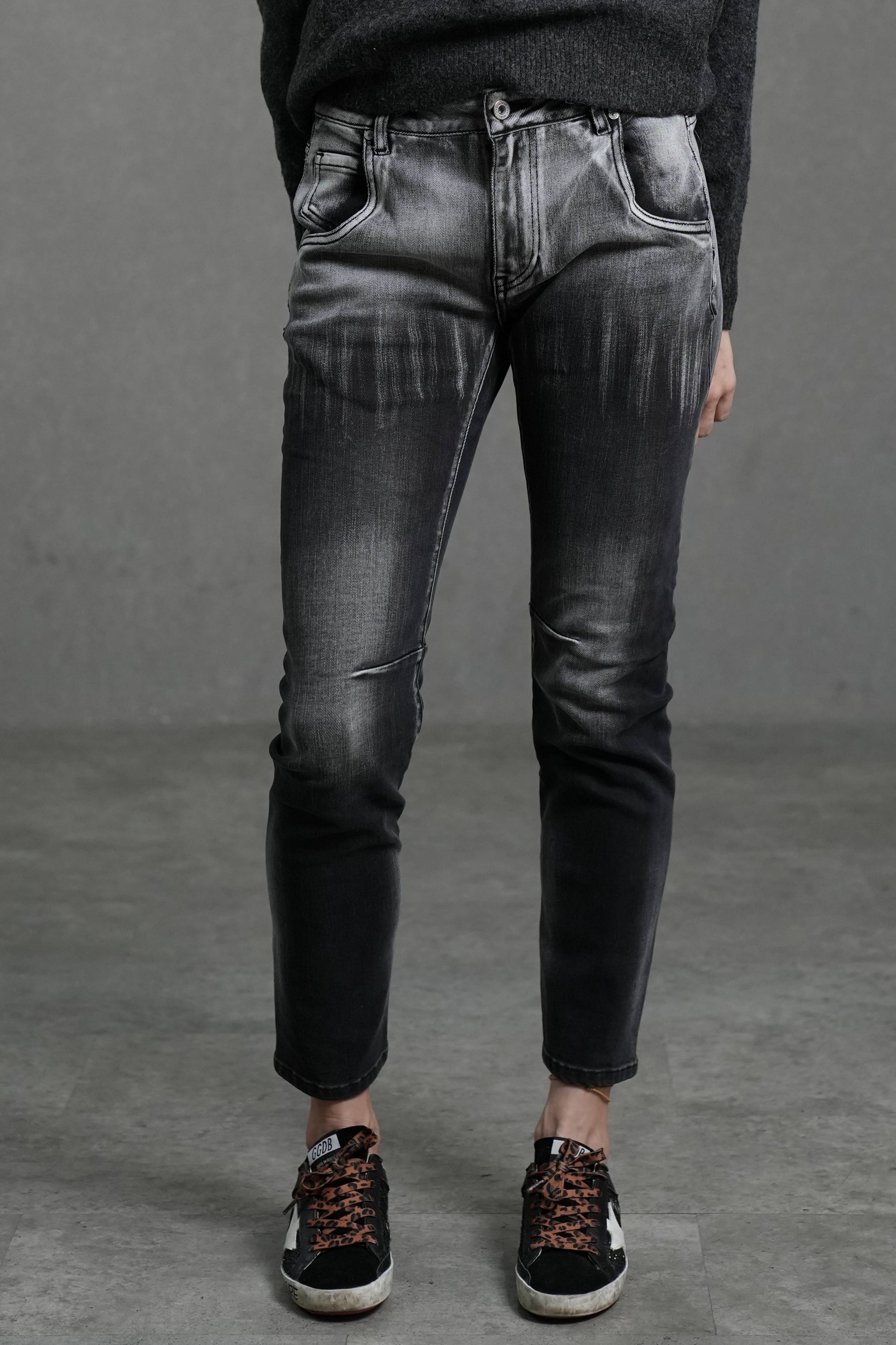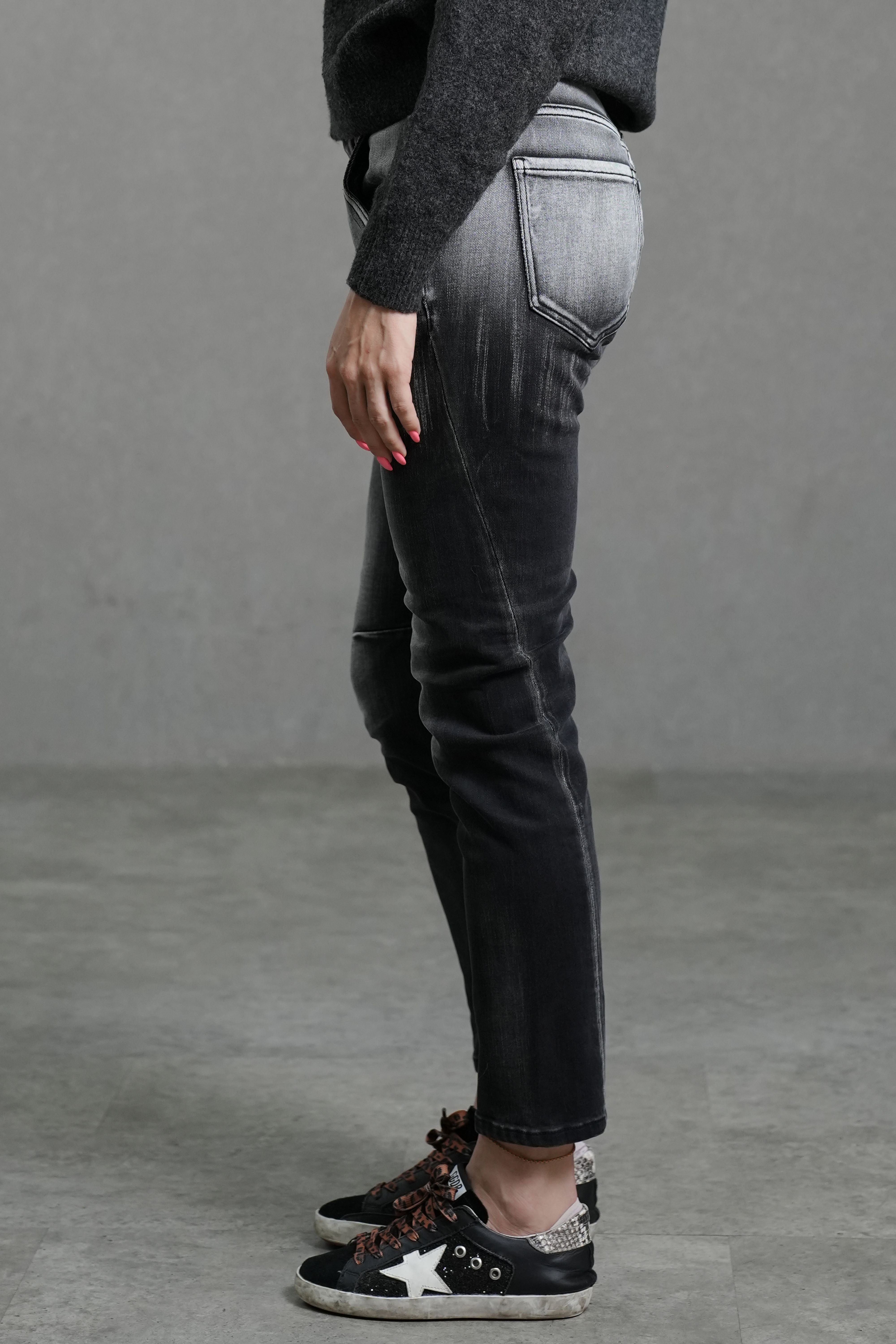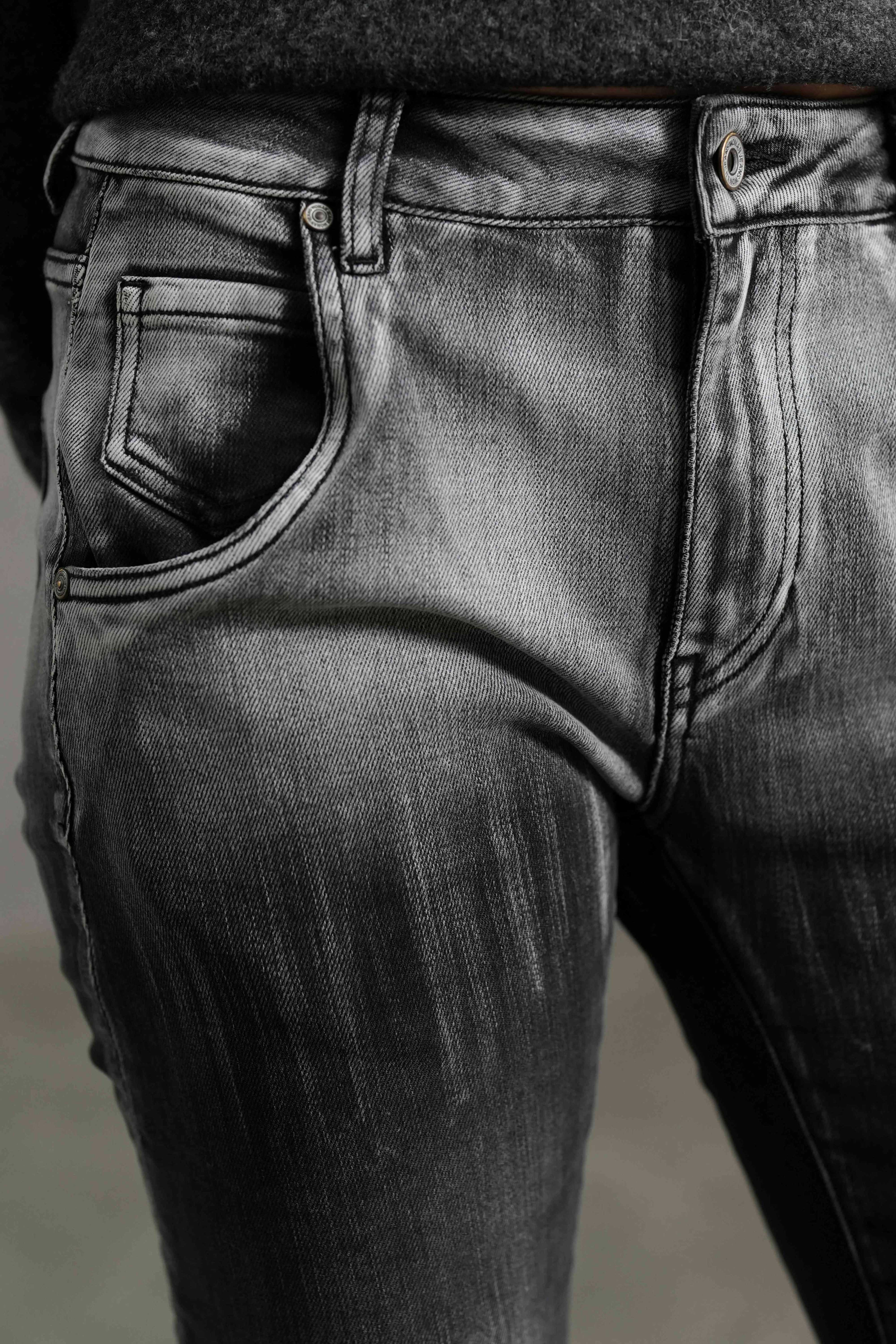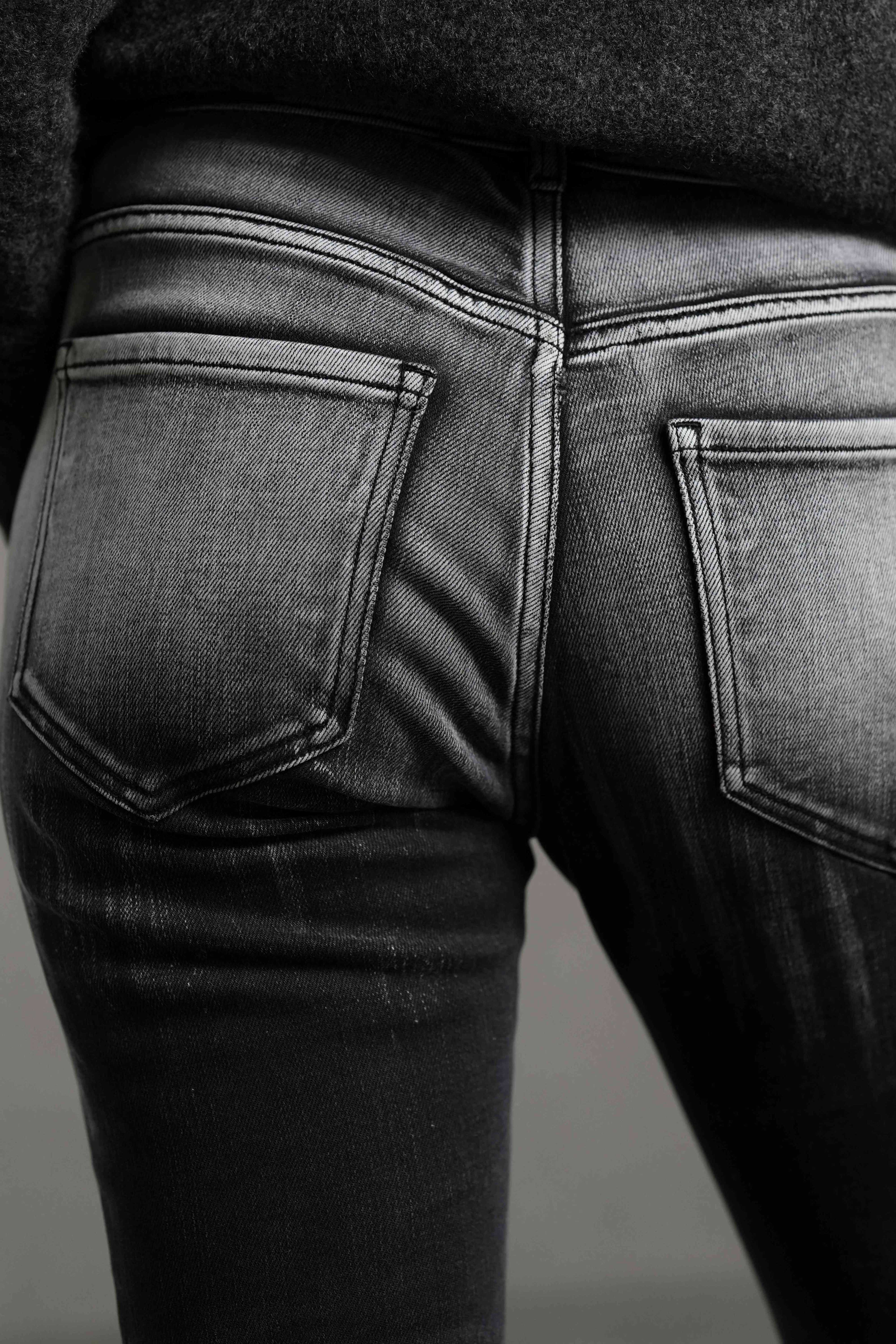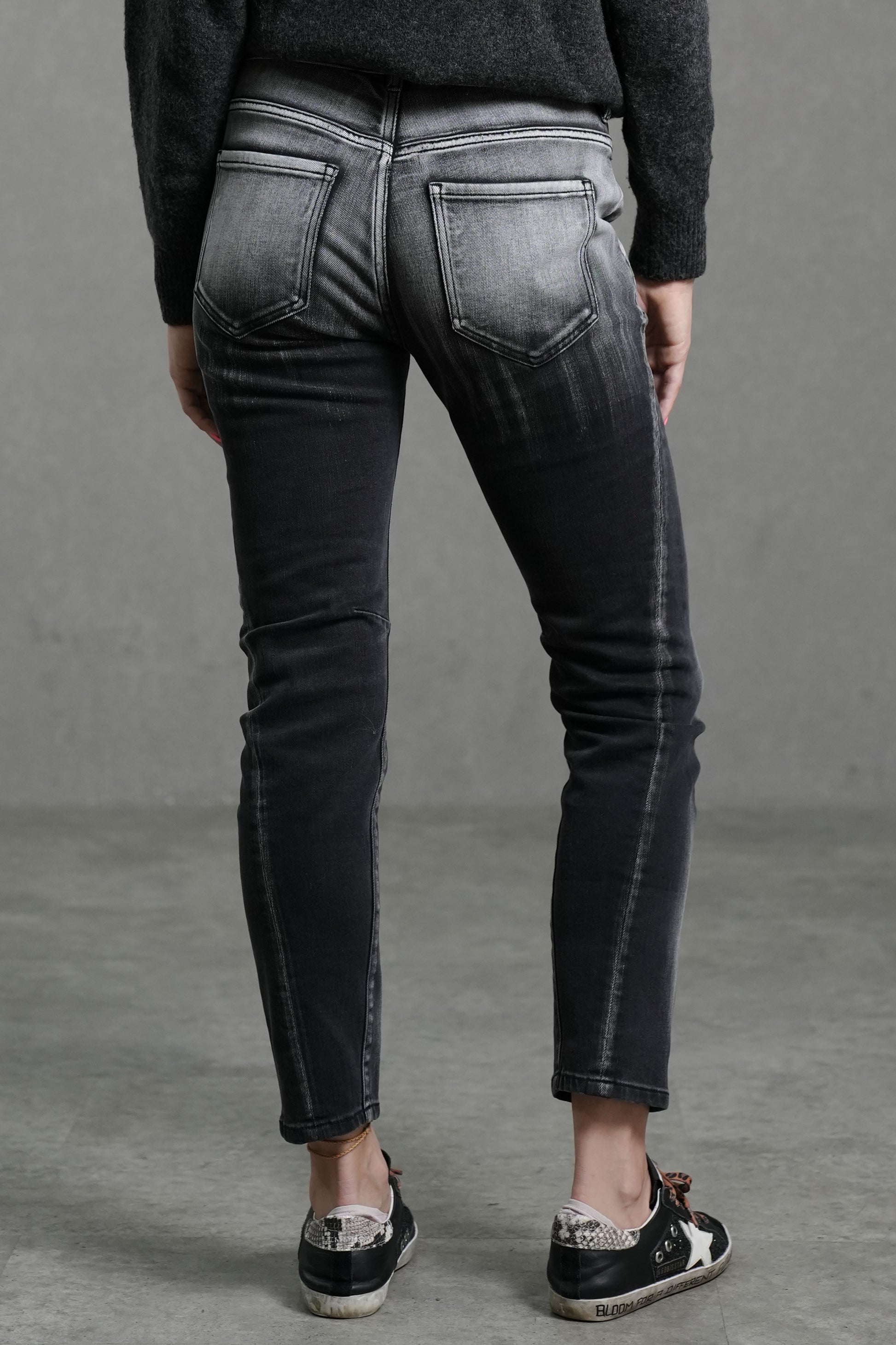 Confectionné dans un denim de qualité à faible élasticité, ce jean séduit par son délavage dégradé du noir profond au gris fumé, apportant relief et caractère à la silhouette. Sa coupe slim affine la jambe tout en préservant le confort grâce à une confection précise et structurée. Sa longueur légèrement raccourcie et sa taille mi-haute offrent une allure contemporaine et affirmée, idéale aussi bien avec des sneakers qu’avec des bottines pour un style urbain chic.