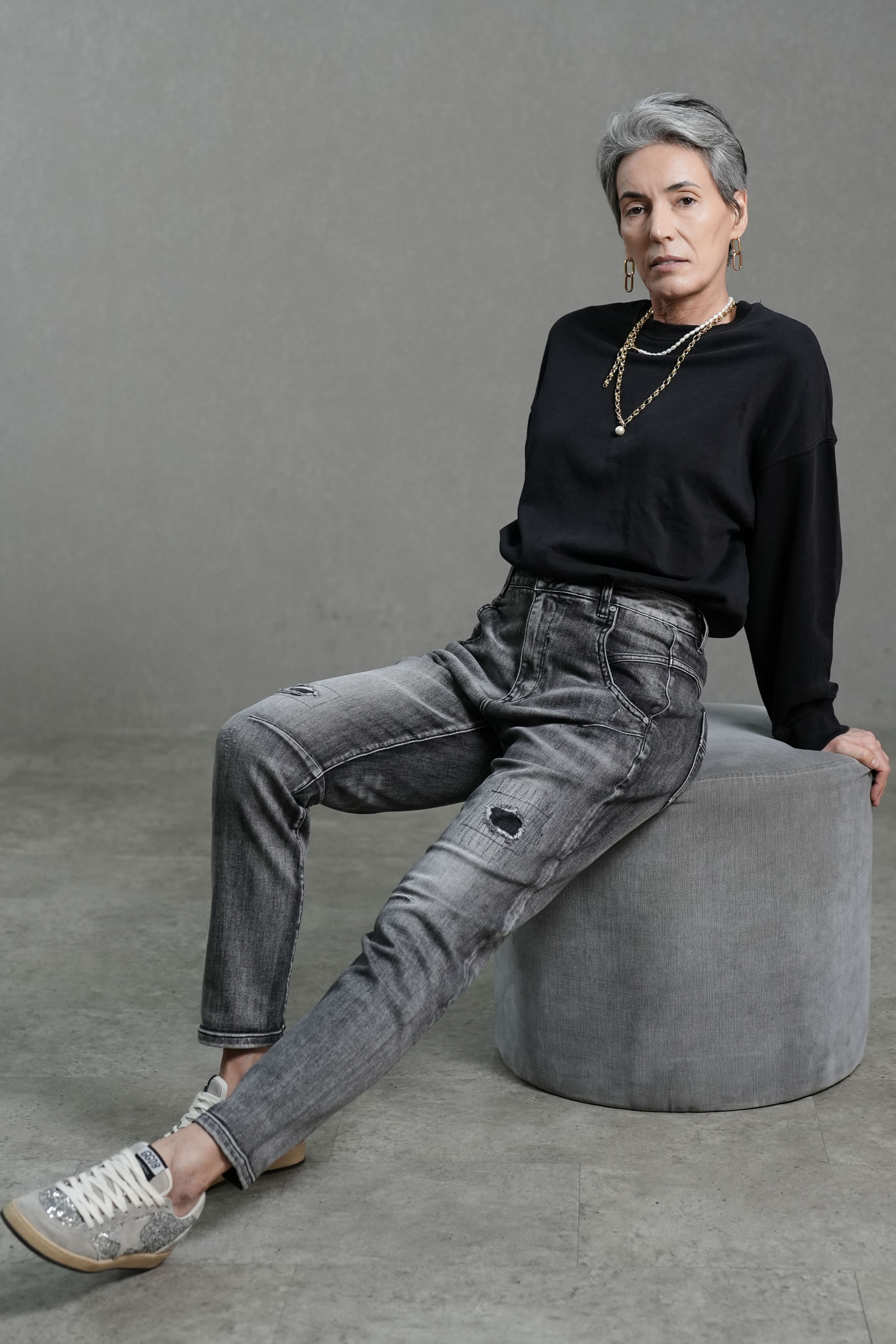 Mots-clés : Confortable, flexible, effet usé, moderne, silhouette allongée