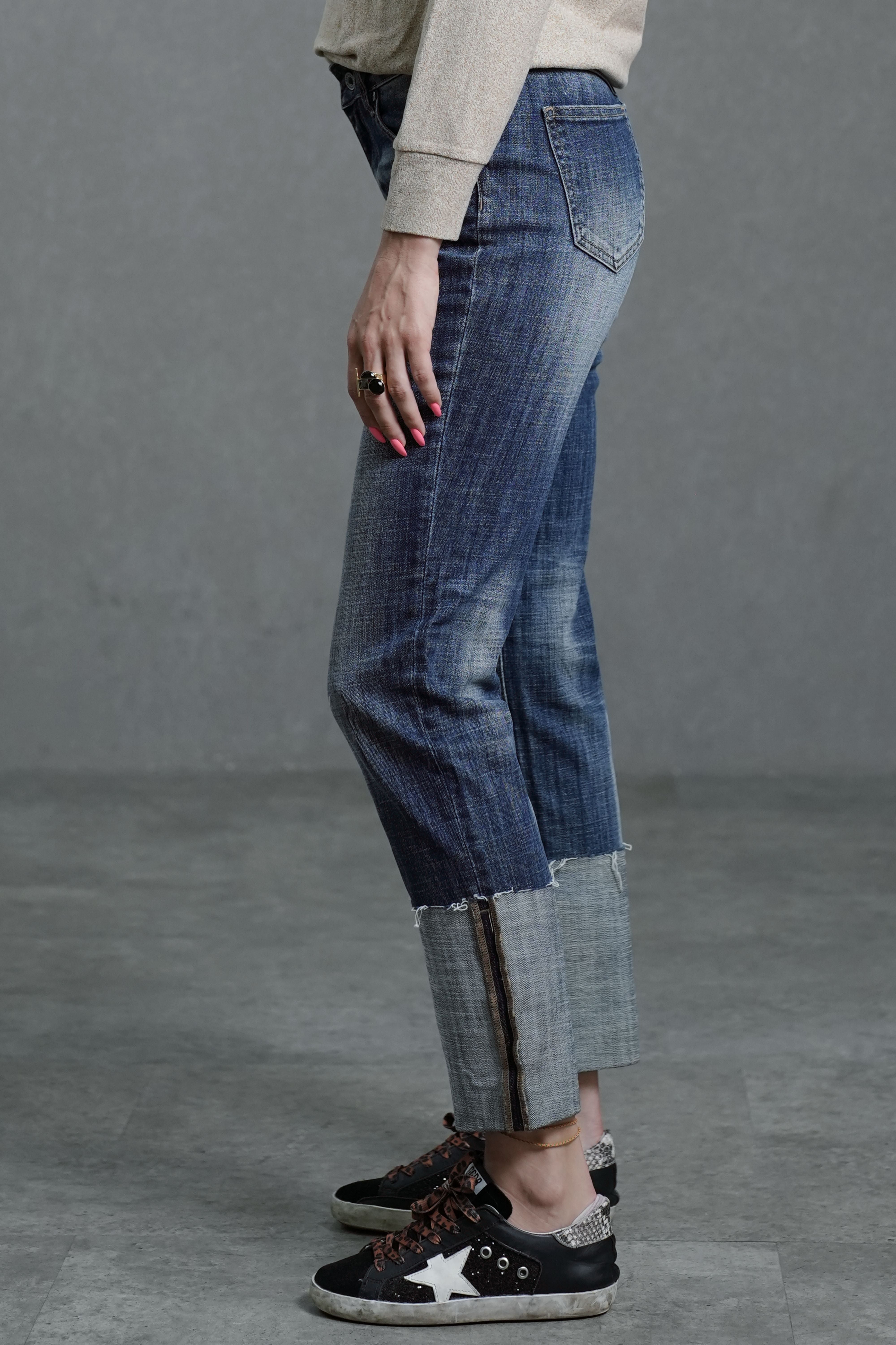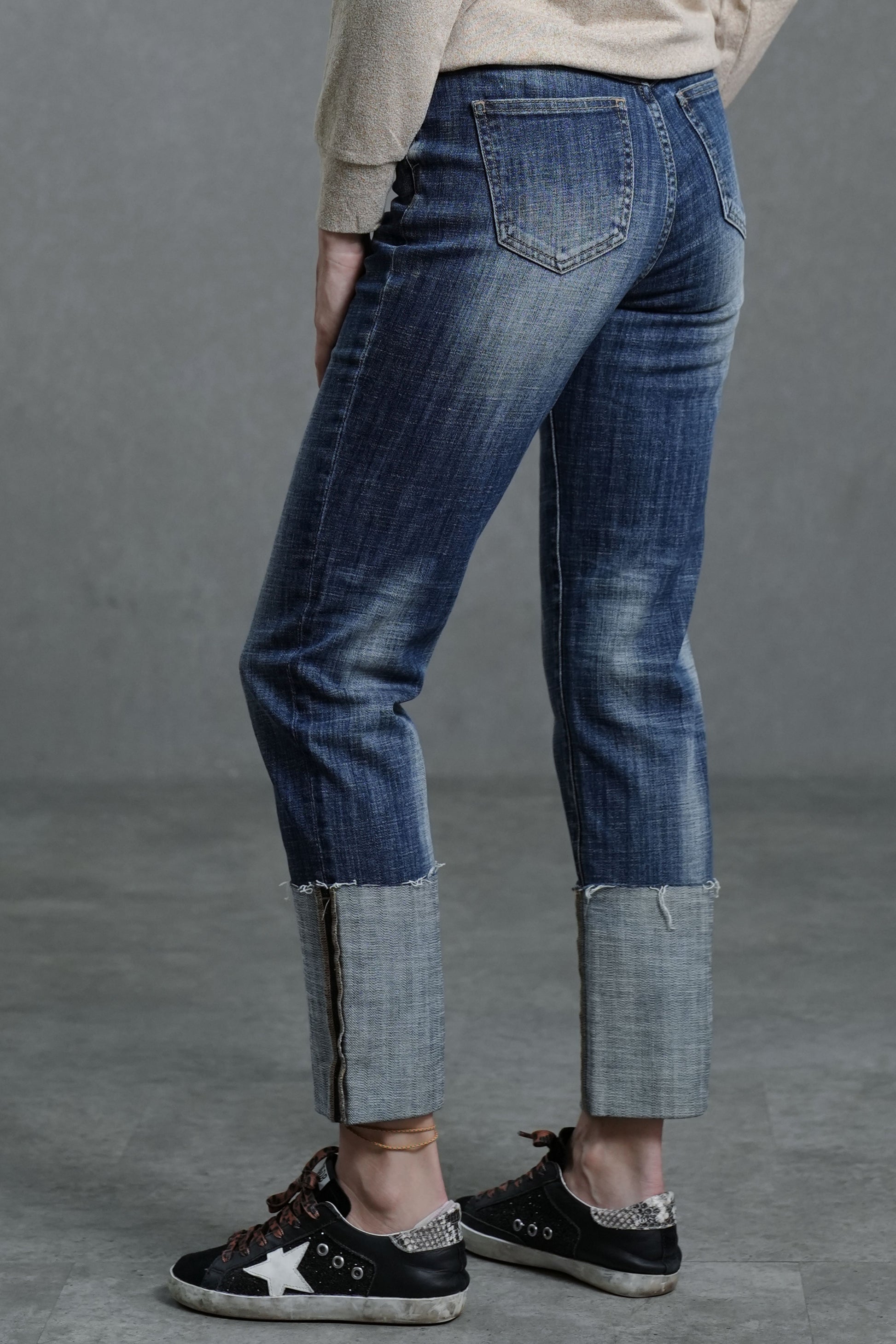 Confectionné dans un denim robuste à faible élasticité, ce jean offre une tenue structurée et un confort naturel au quotidien. Sa coupe droite et ajustée effleure la jambe pour une ligne nette et allongeante. L’ourlet peut se porter retroussé pour un style décontracté ou long pour une allure plus classique et élégante.