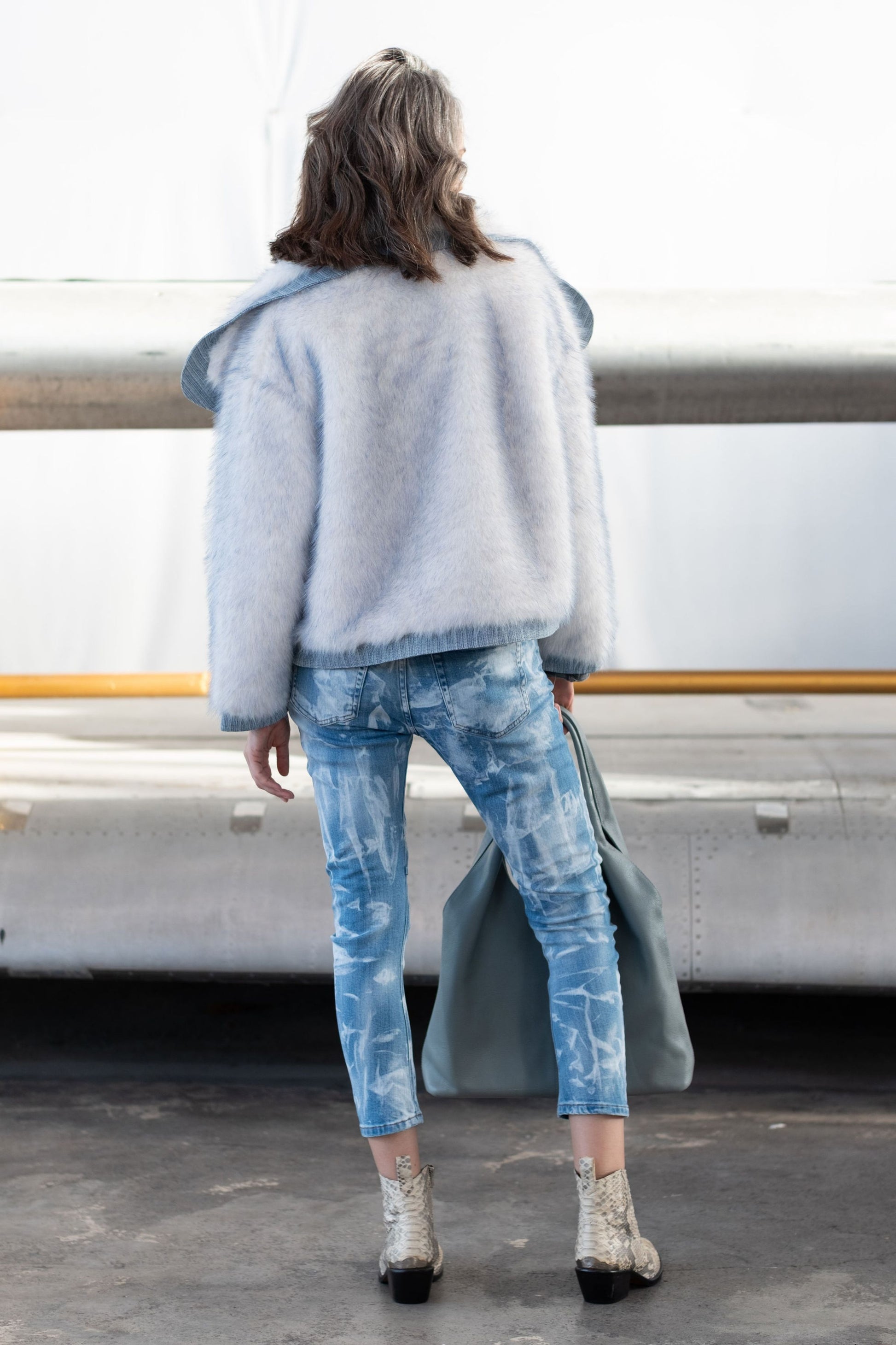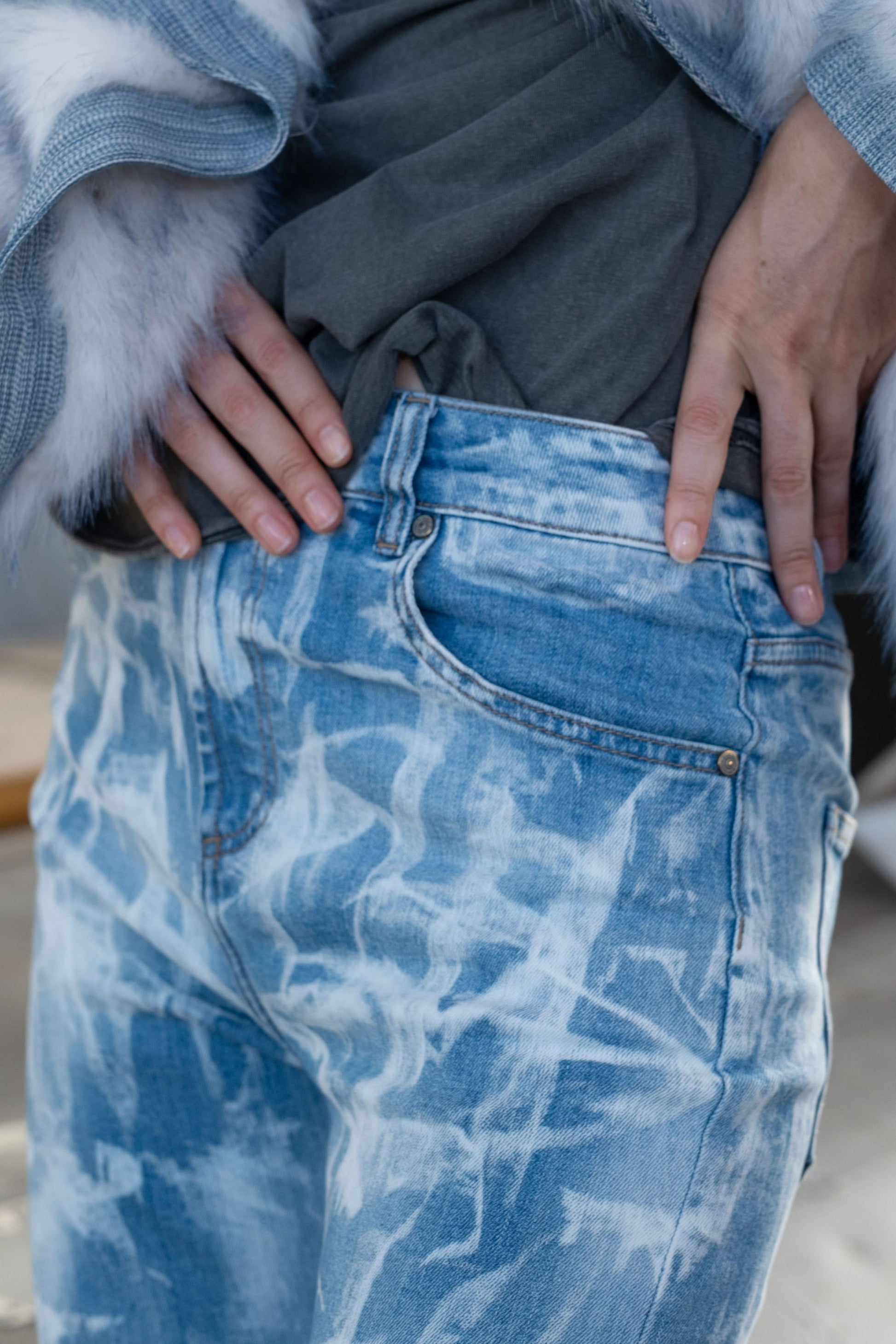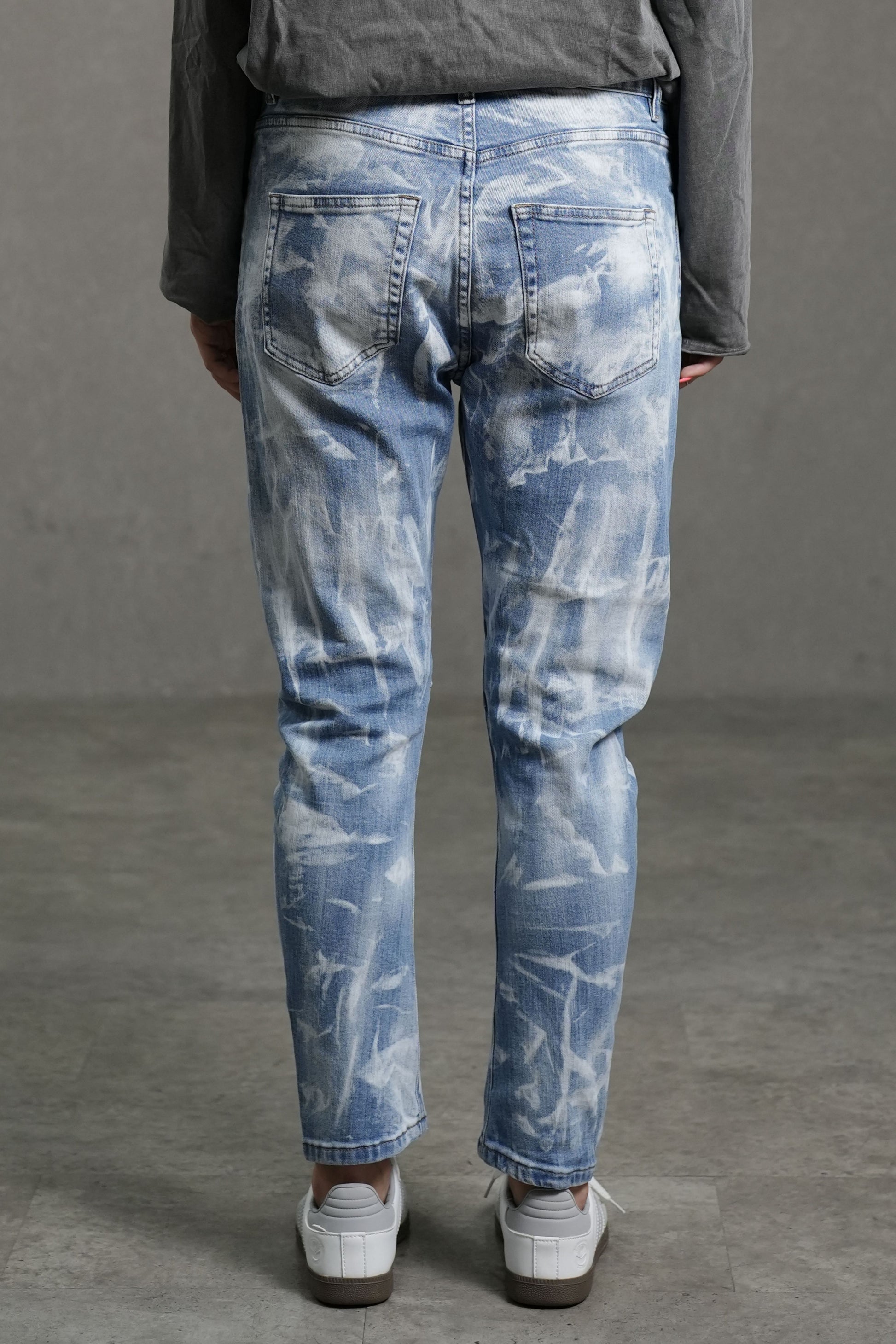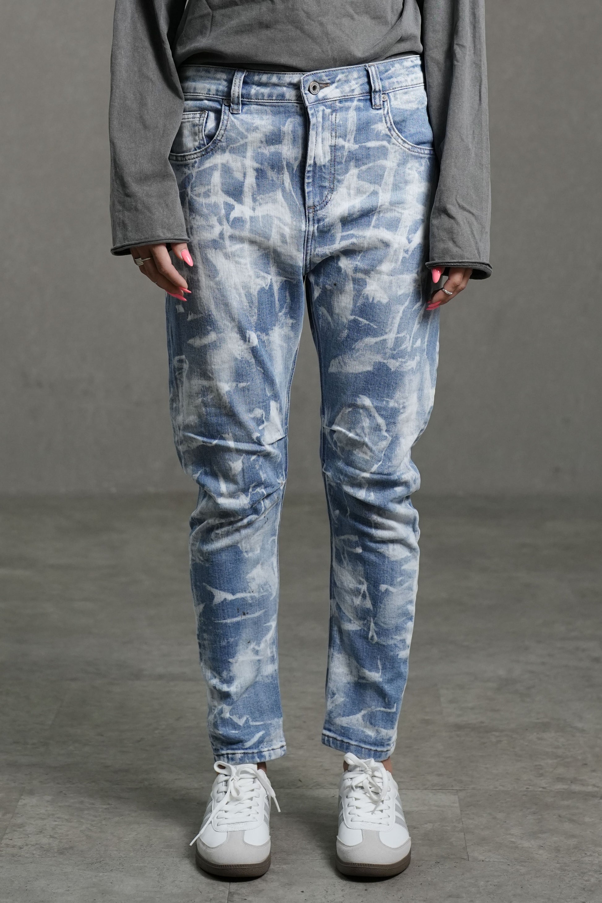 Ce jean adopte une coupe fuselée décontractée et une taille mi-haute, alliant confort et allure contemporaine. Réalisé dans un denim stretch à élasticité moyenne, il offre la juste dose de souplesse tout en gardant une belle structure. L’effet peinture blanche appliqué sur le tissu apporte une touche artistique audacieuse, transformant ce modèle en véritable pièce statement au style urbain affirmé.