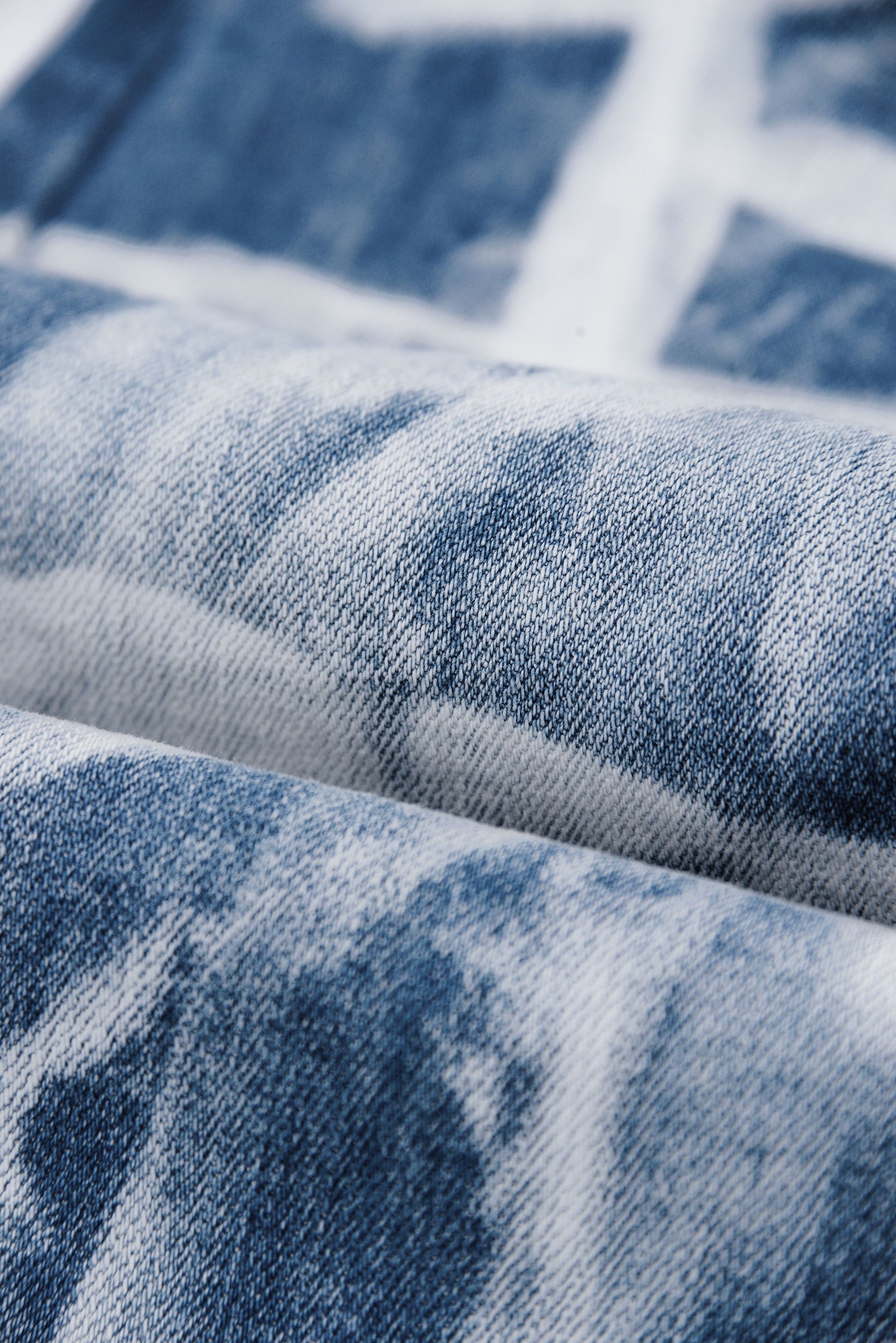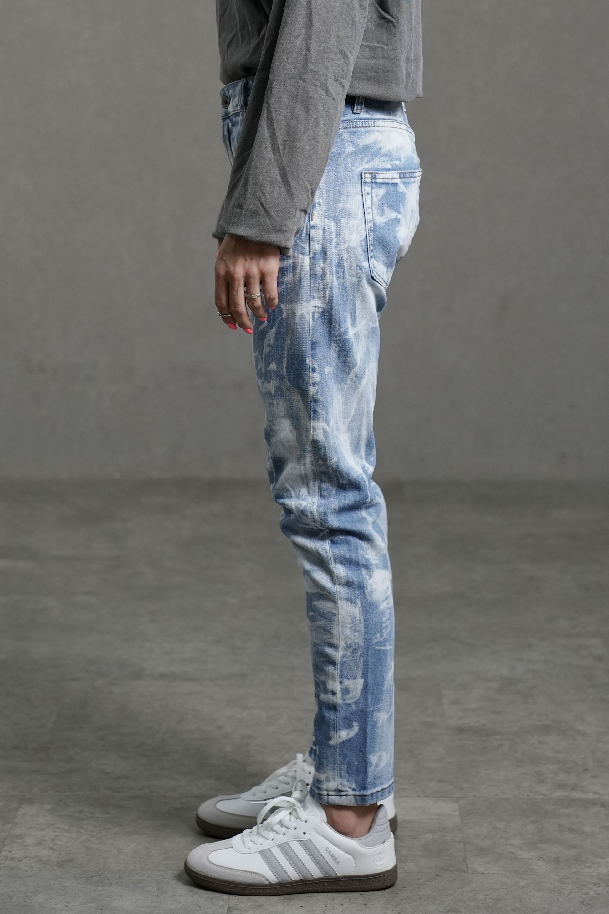 Jean bleu coupe fuselée décontractée en denim stretch avec effet peinture blanche
