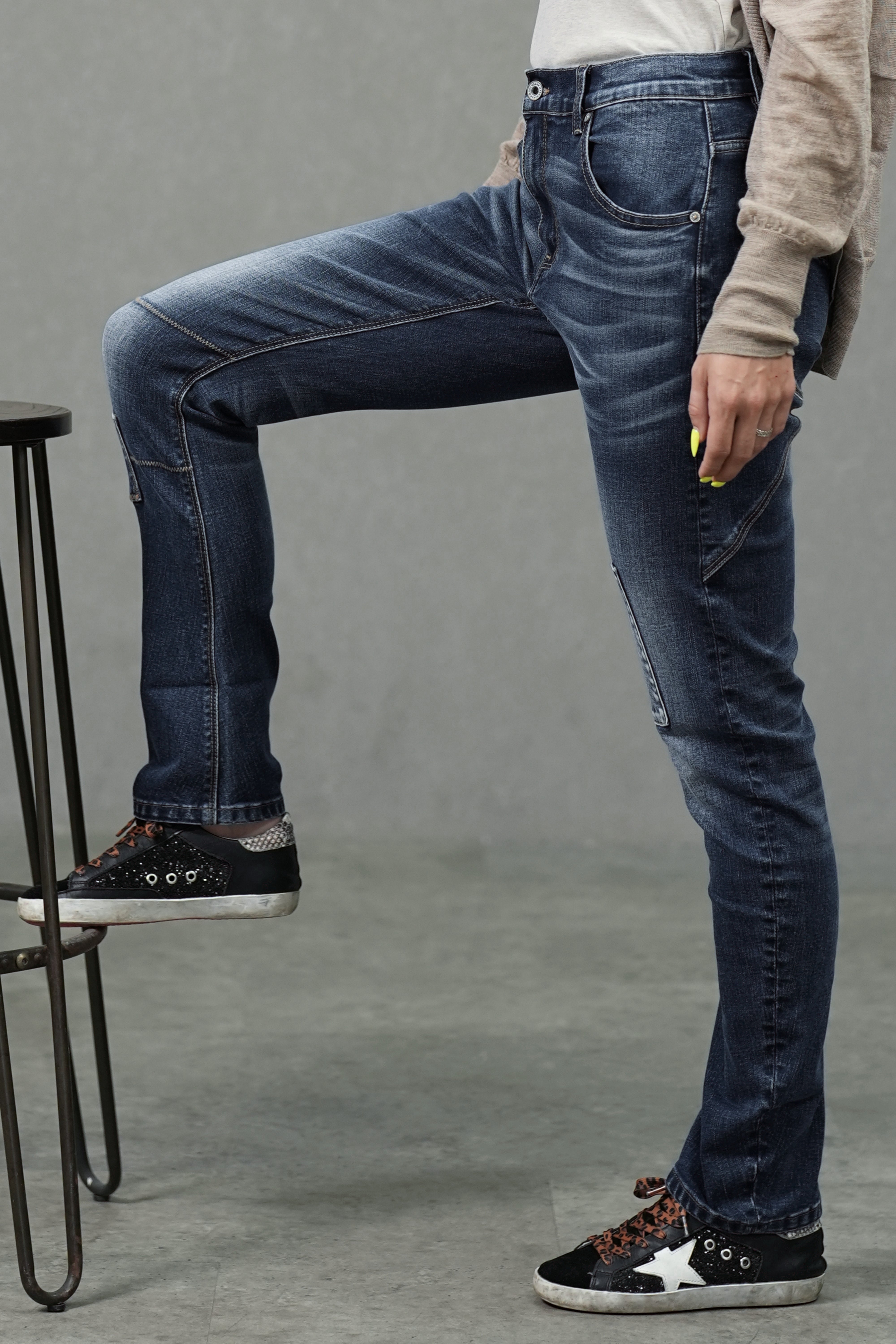 - Coupe : Jambe slim fuselée, ourlet retroussable au choix