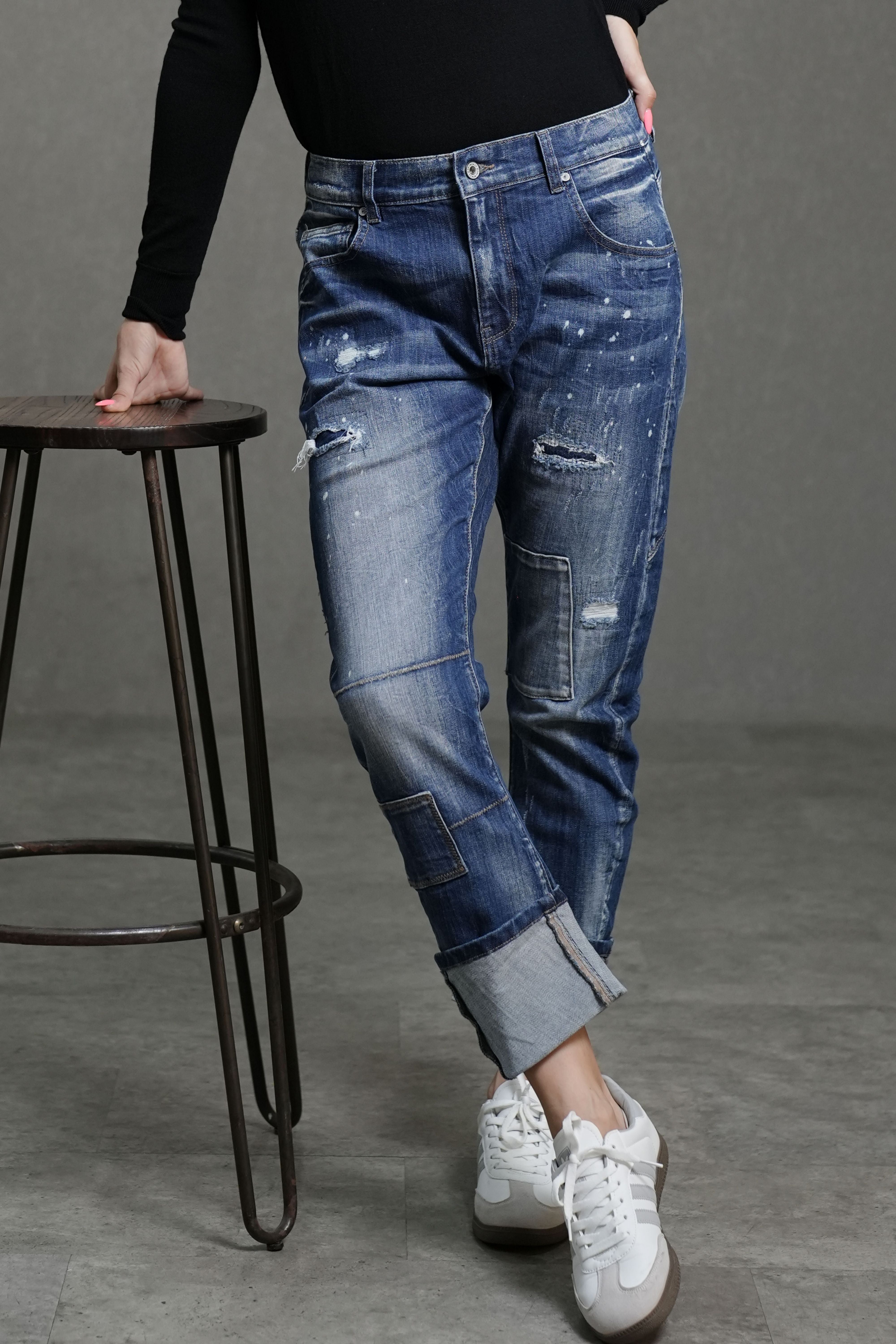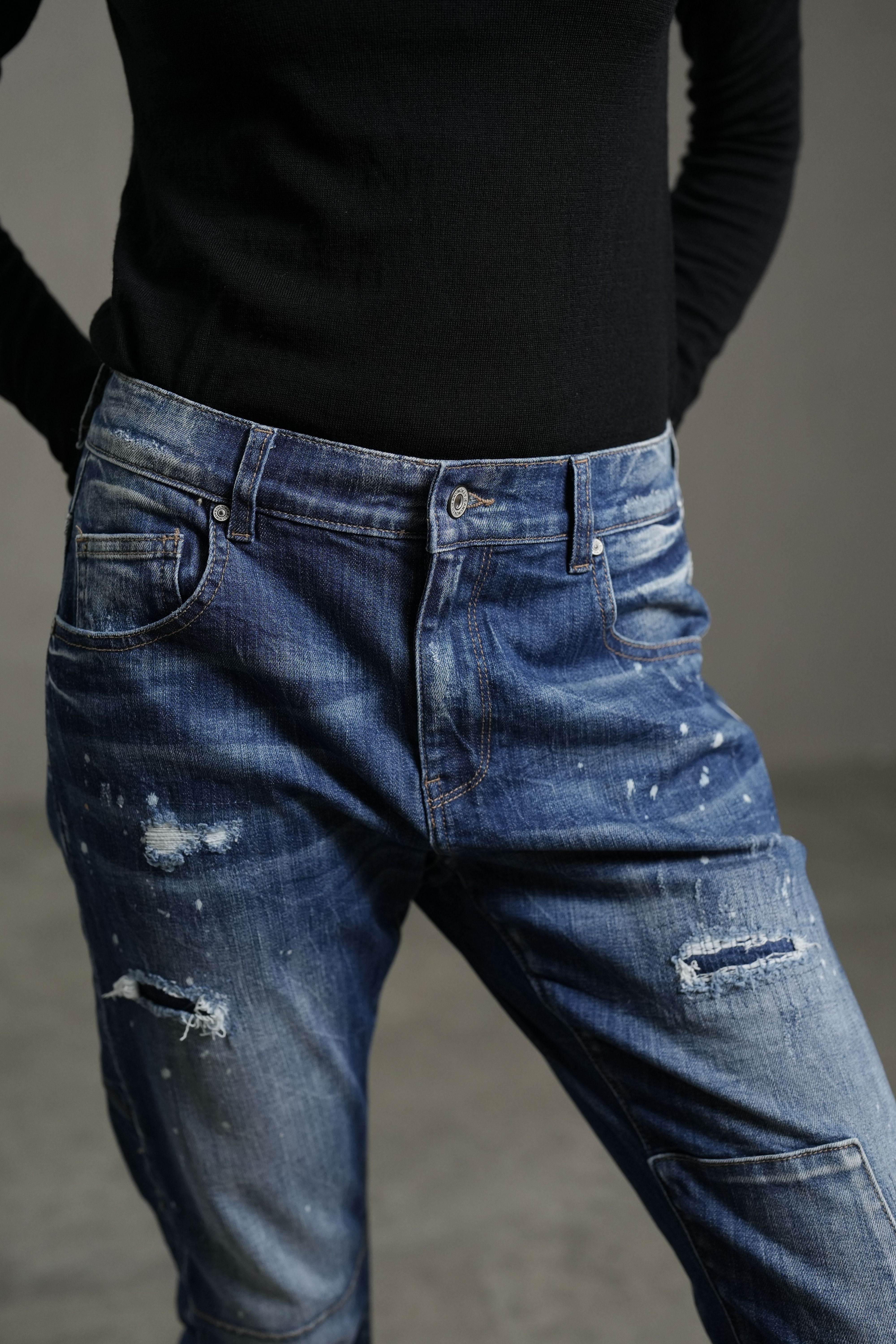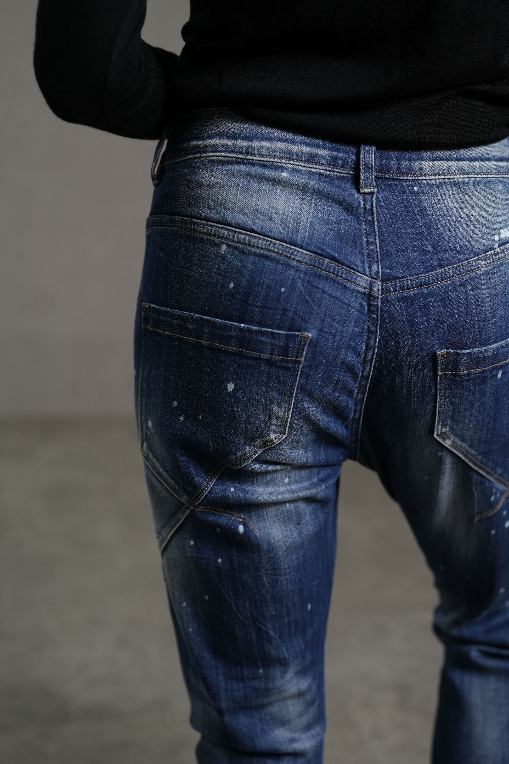 Conçu avec une taille mi-basse et une jambe fuselée, ce jean offre une coupe ajustée tout en restant confortable. Les effets délavés et les éclaboussures de peinture apportent une touche audacieuse et urbaine. Le revers peut se porter retroussé pour un look décontracté ou long pour une silhouette allongée.