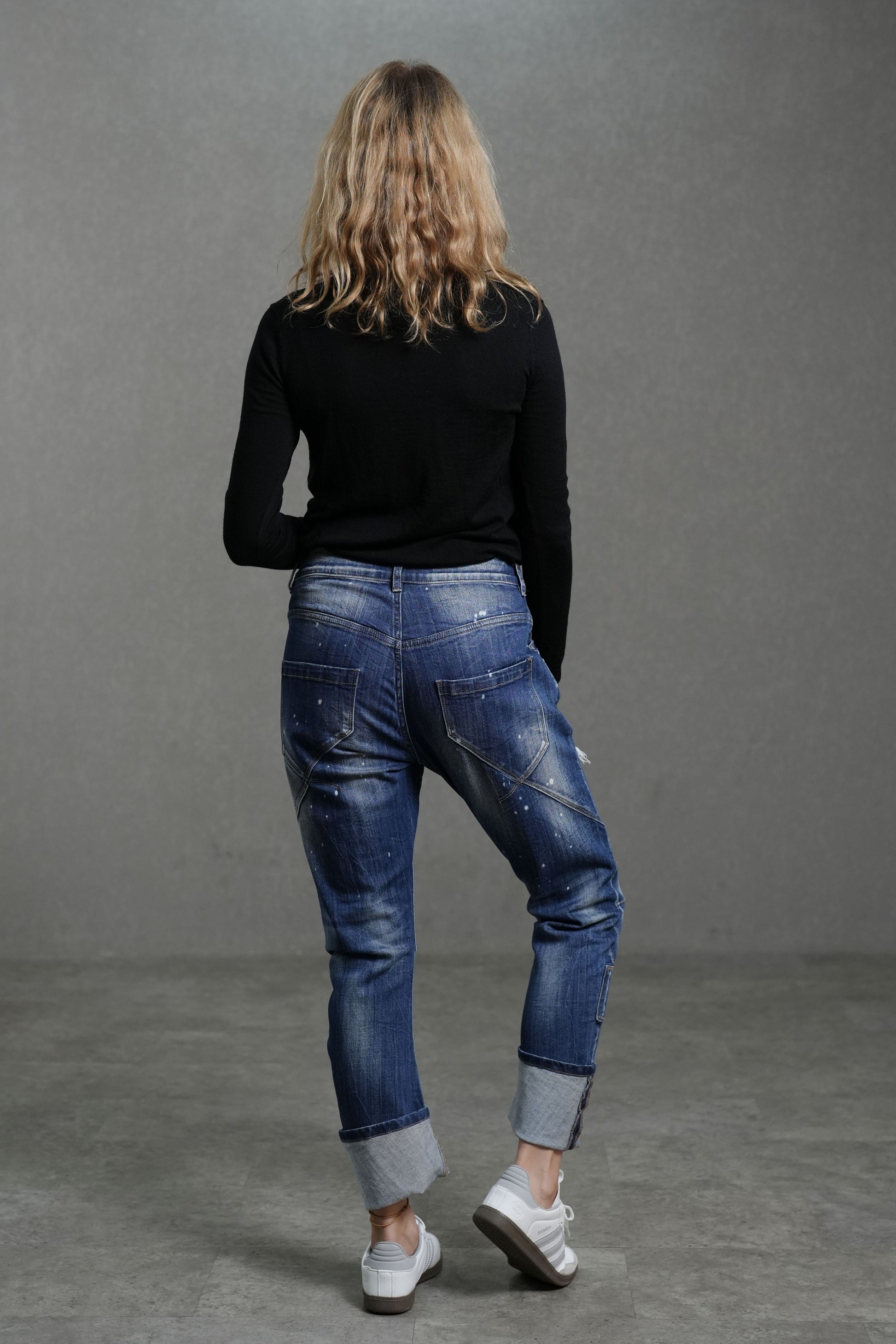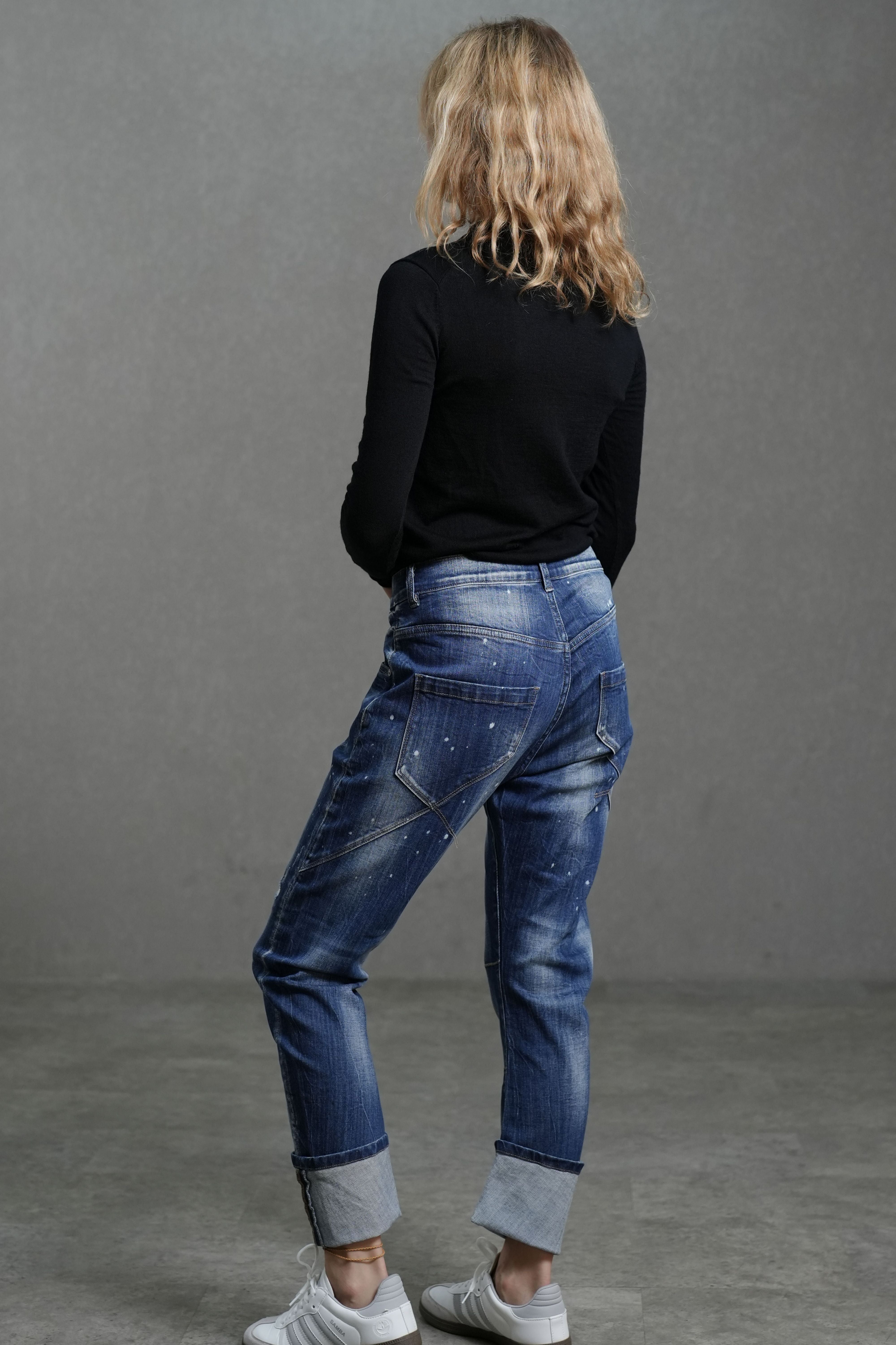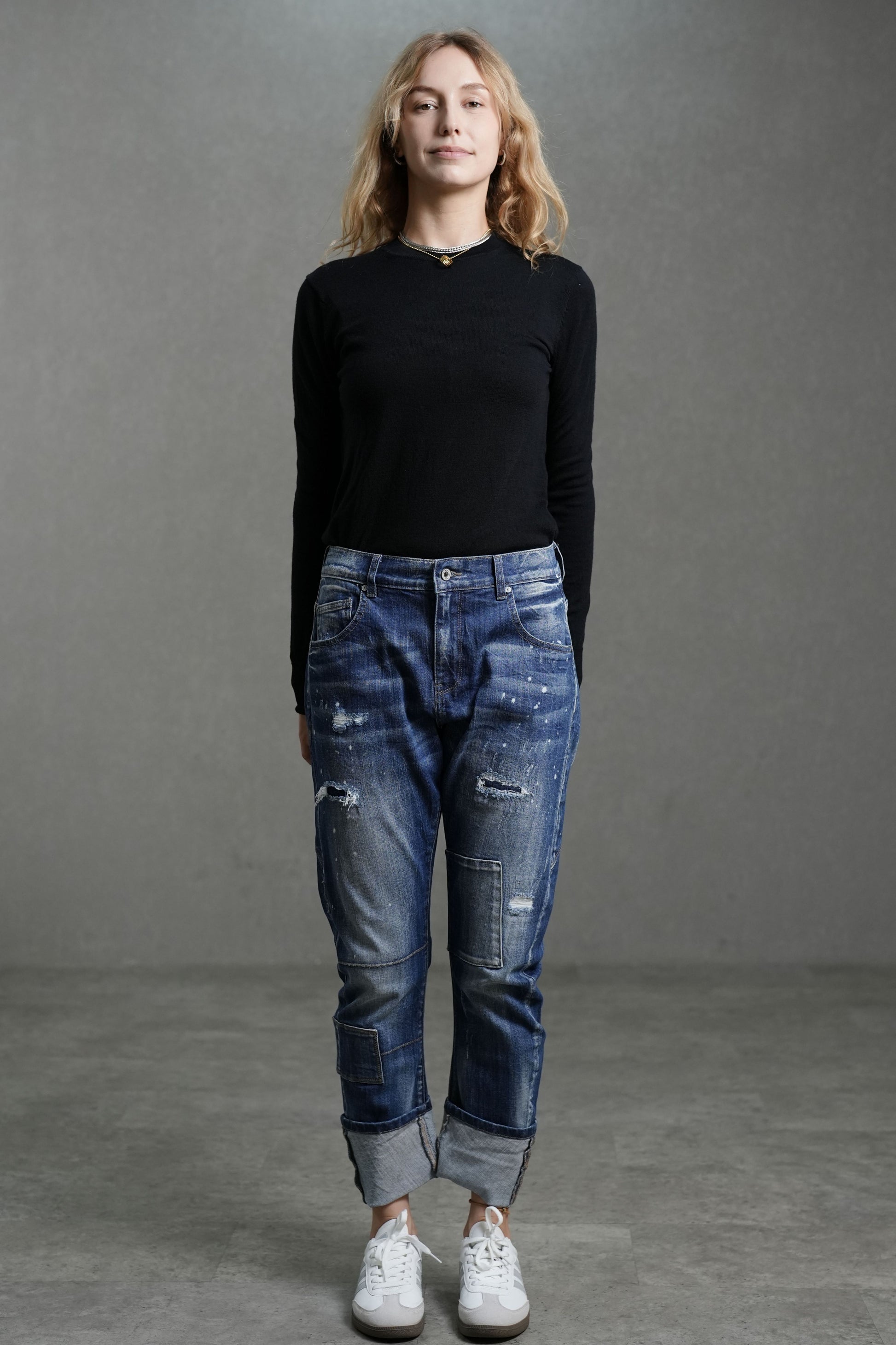 Conçu avec une taille mi-basse et une jambe fuselée, ce jean offre une coupe ajustée tout en restant confortable. Les effets délavés et les éclaboussures de peinture apportent une touche audacieuse et urbaine. Le revers peut se porter retroussé pour un look décontracté ou long pour une silhouette allongée.