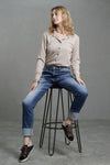 Crafted from smooth, mid-stretch denim for gentle flexibility and everyday comfort. The slim cut follows the leg without clinging, and the cuffed hem can be styled up or worn long for full-length versatility.