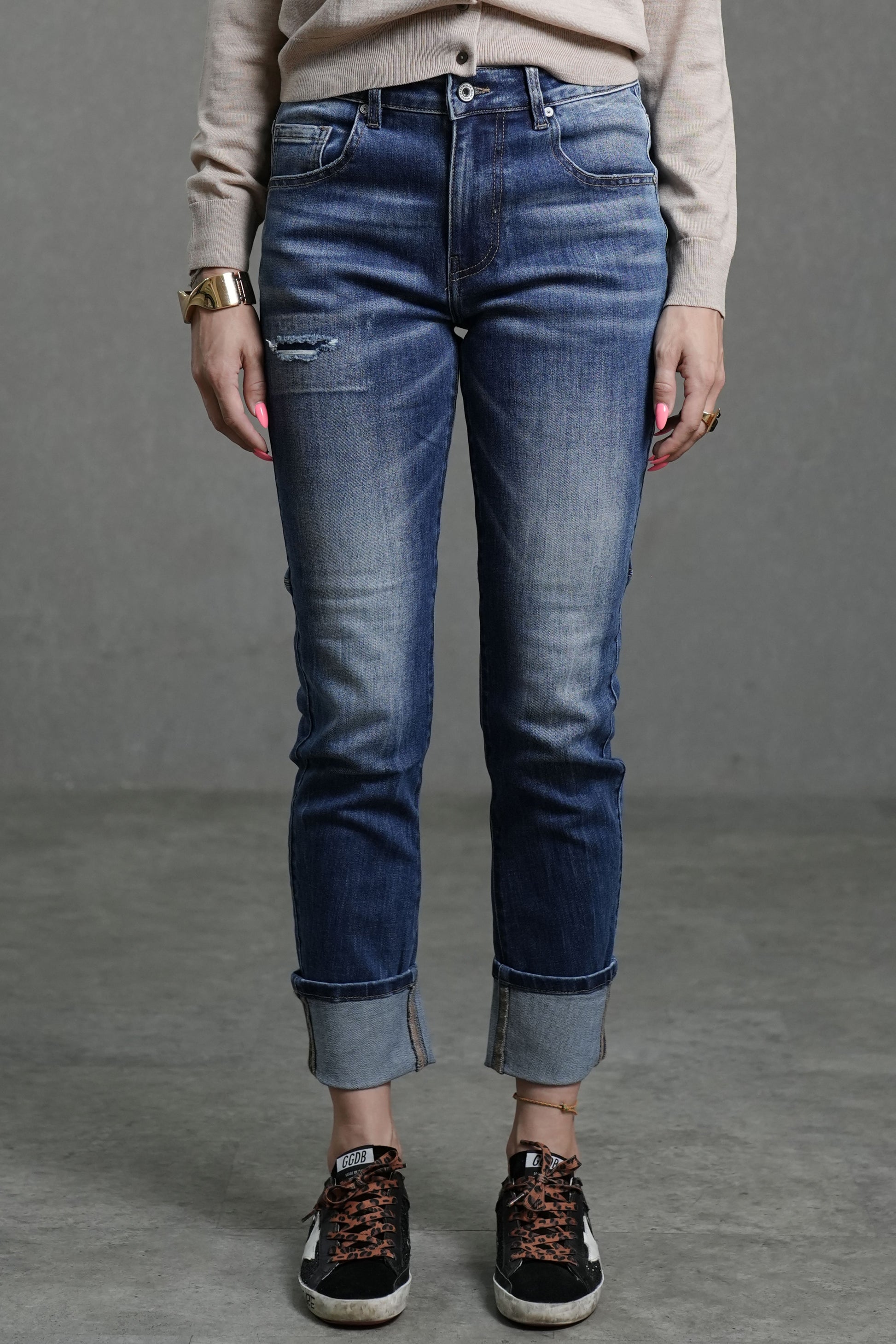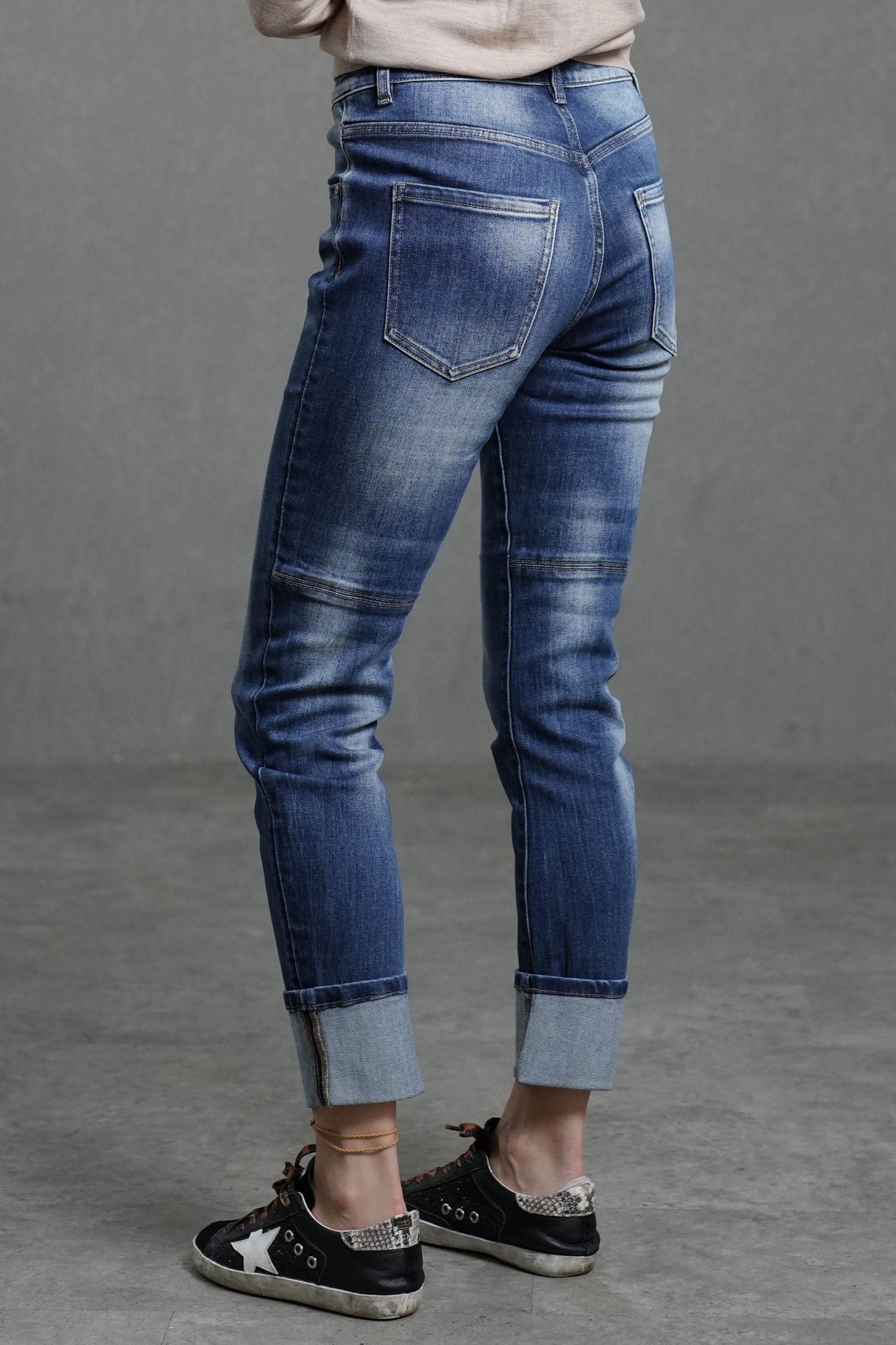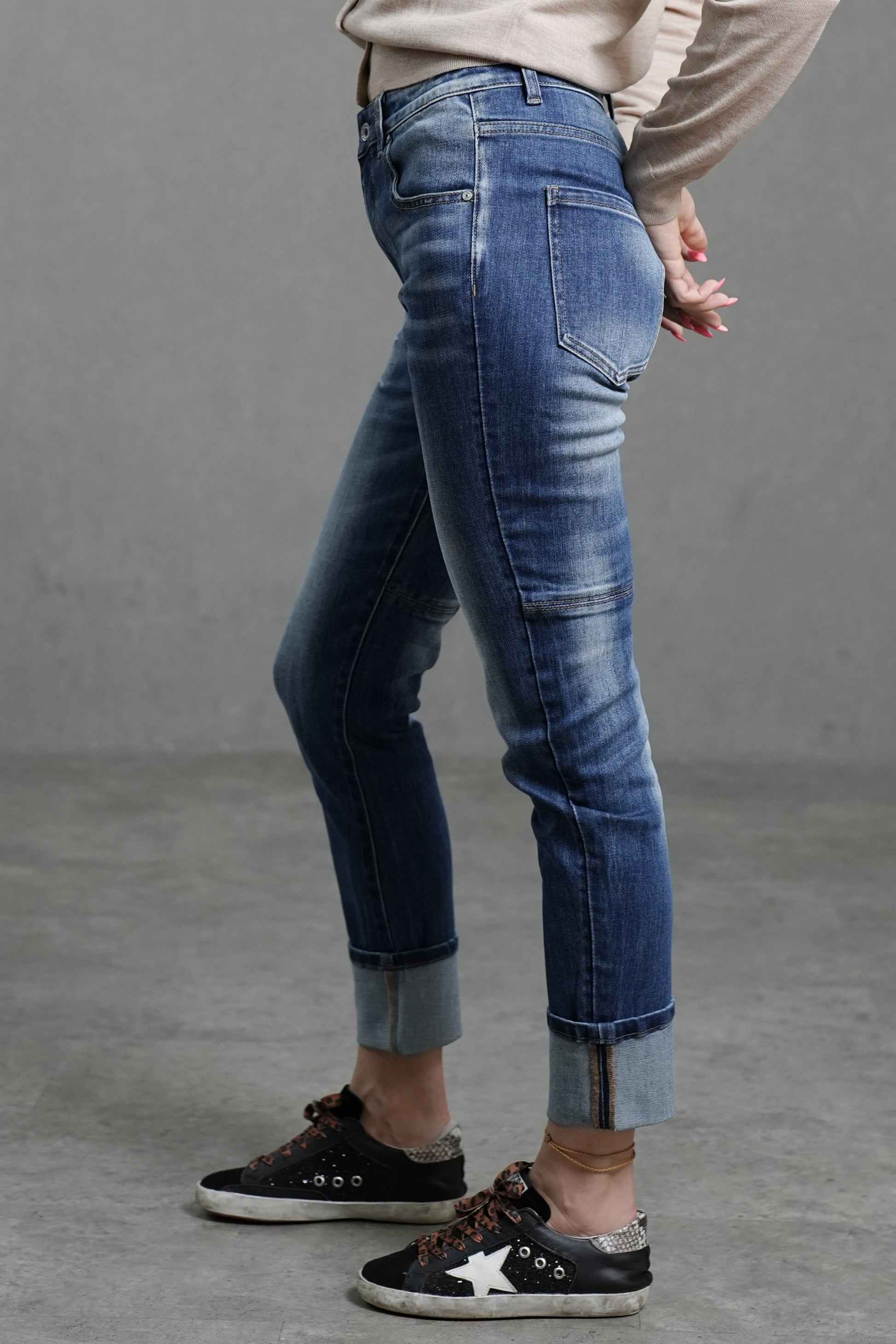 Keywords: Flexible, Contoured, Versatile, Indigo, Cuffed Hem